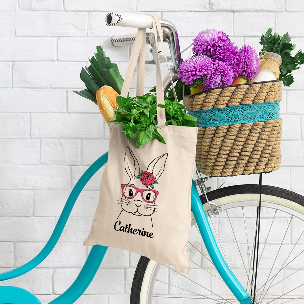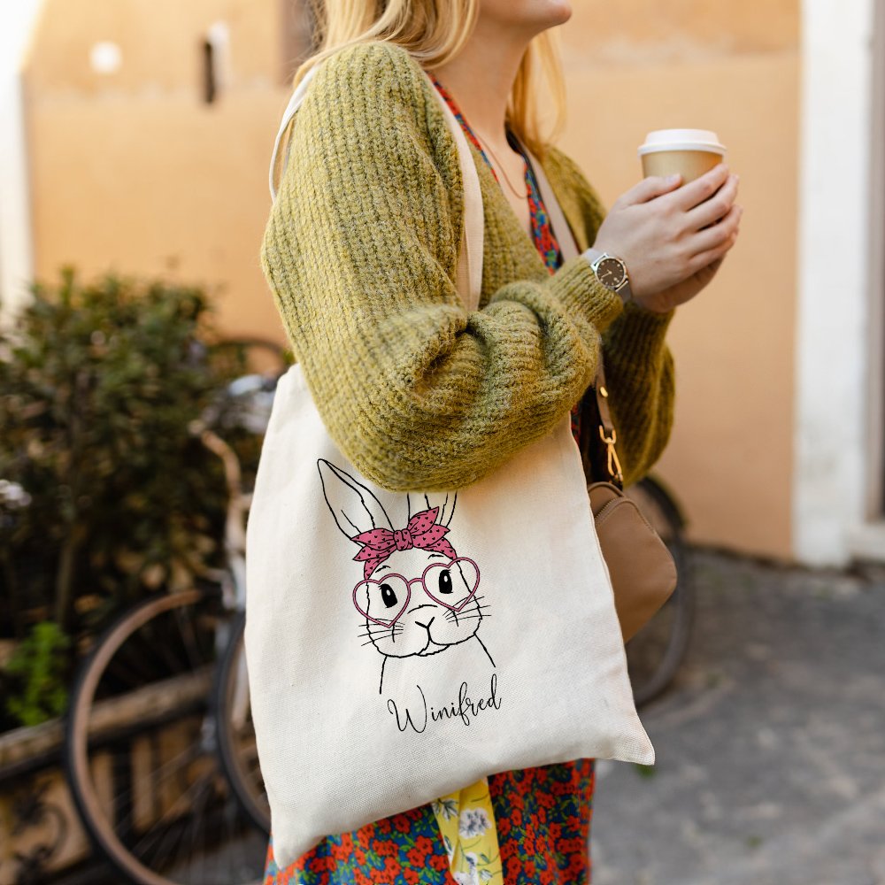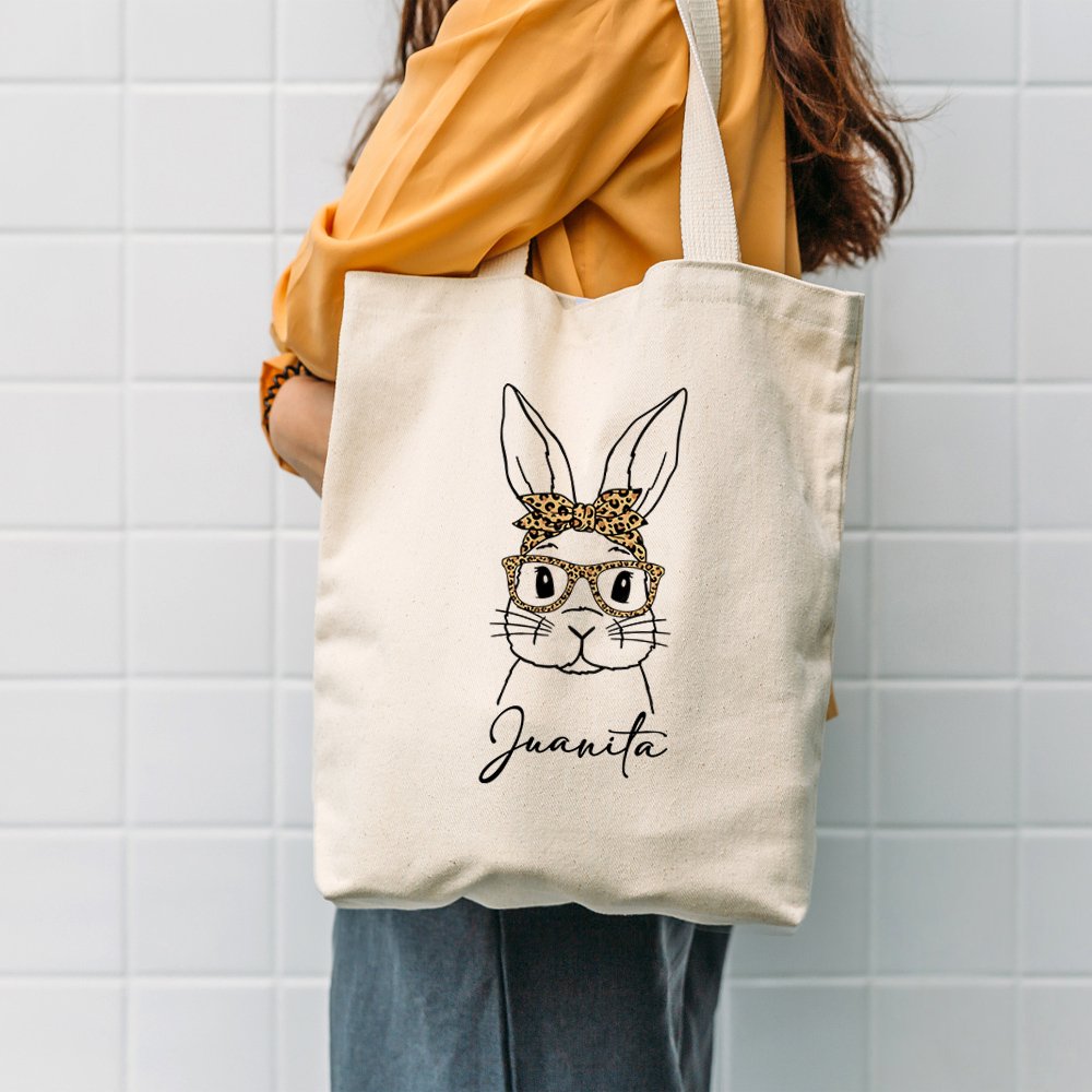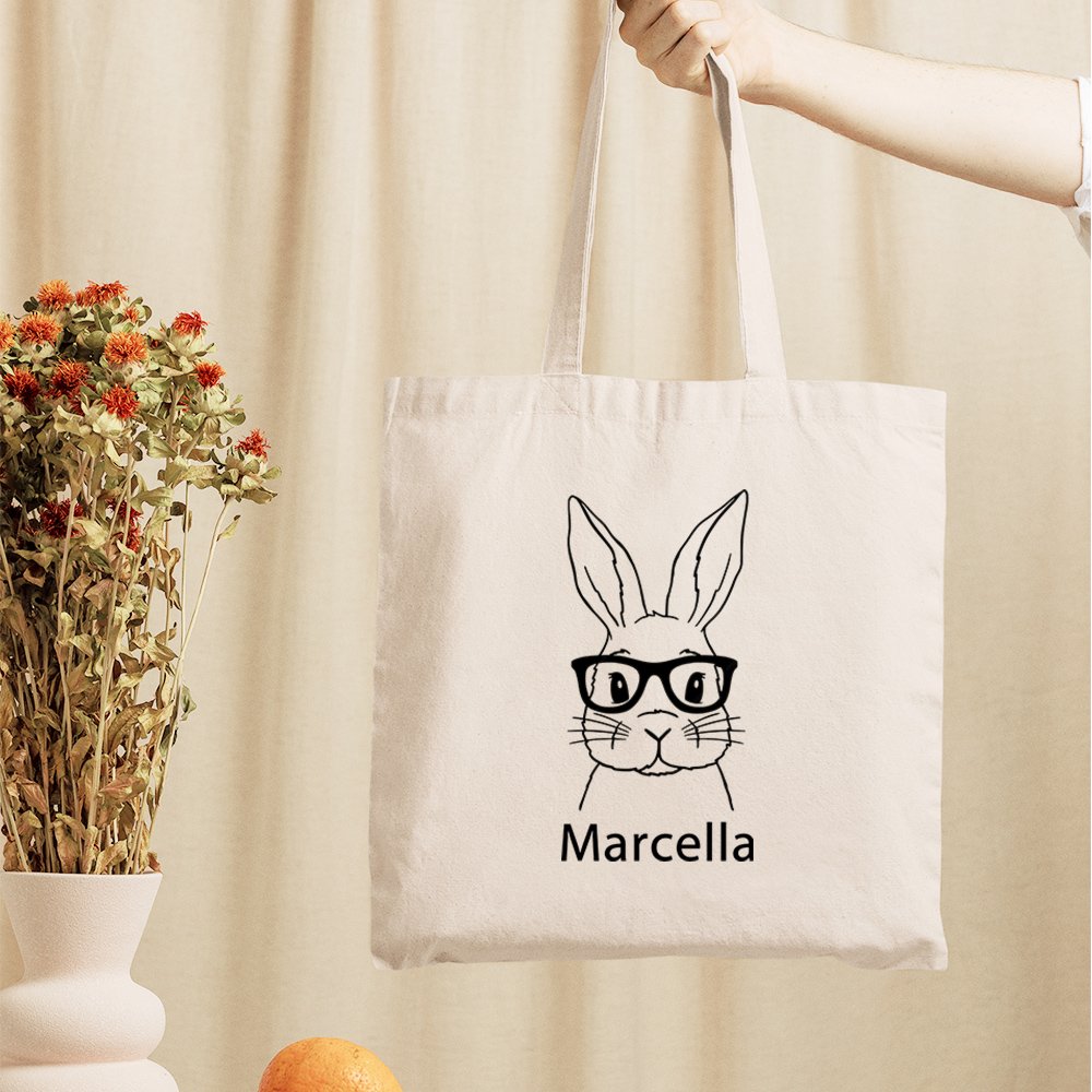 Elevate il vostro stile con la nostra borsa tote con quattro affascinanti disegni di coniglietti, ciascuno ornato da adorabili occhiali! Le illustrazioni giocose la rendono immediatamente preferita da grandi e piccini, aggiungendo un delizioso tocco di simpatia e spirito pasquale alla loro giornata.