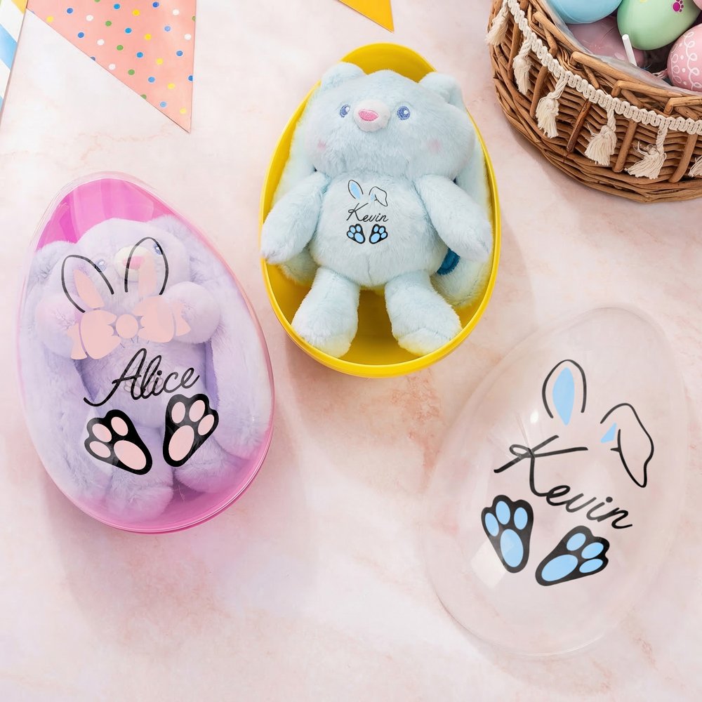Uovo di Pasqua Jumbo riempibile del coniglietto di Pasqua personalizzato e portachiavi di peluche estensibile con nome Cesto riempitivo Regalo per la festa di Pasqua per bambini