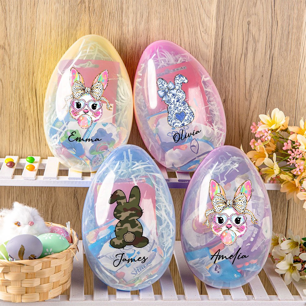 Scegliete tra tre affascinanti disegni di coniglietti, ognuno con un tocco unico, rendendo questo uovo una scelta versatile per i bambini di tutte le età. È possibile personalizzare l'uovo con un nome che si adatti alla personalità o alle preferenze del bambino.