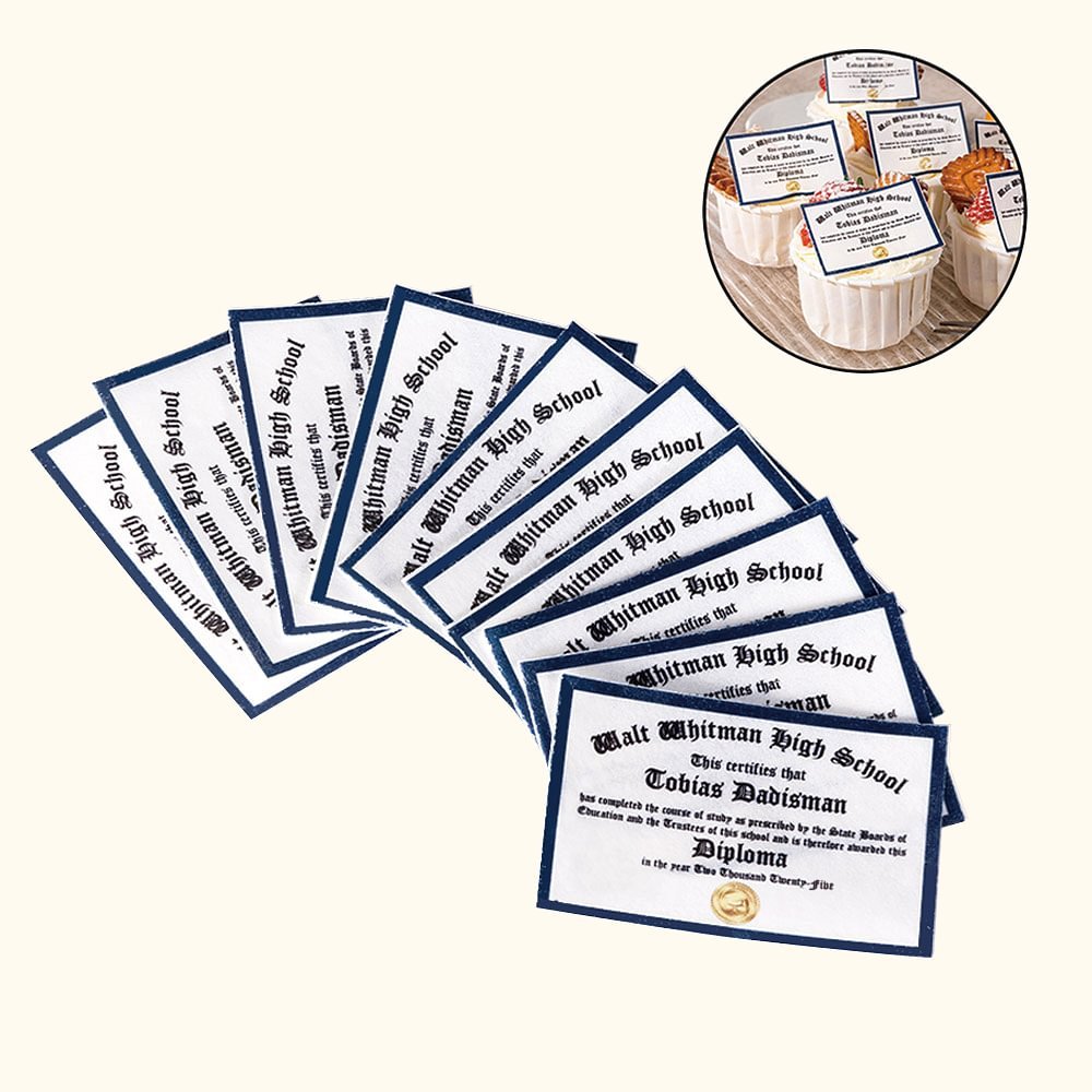 Il nostro cupcake topper è disegnato nello stile di un diploma, sia che si tratti di un diplomato che di un laureato. Potete anche personalizzare la vostra scuola e il vostro nome per aggiungere un'atmosfera creativa alla vostra festa di laurea.