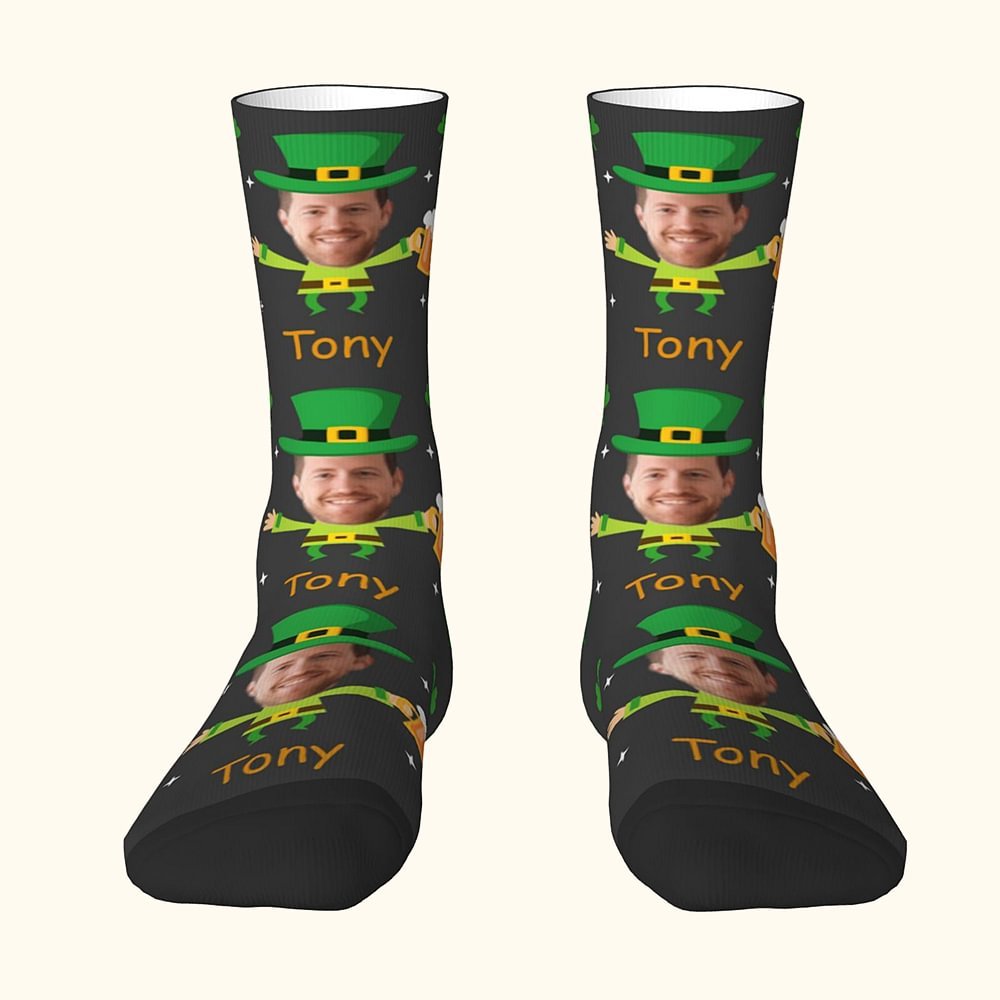 Questi calzini non sono solo per il giorno di San Patrizio! Con il motivo giocoso dell'elfo e il disegno del quadrifoglio portafortuna, questi calzini sono un regalo premuroso e commovente per la vostra famiglia o i vostri amici irlandesi. Includendo il loro nome e la loro immagine, creerete un ricordo personalizzato e unico che celebra il loro patrimonio irlandese e mostra il vostro amore e apprezzamento.