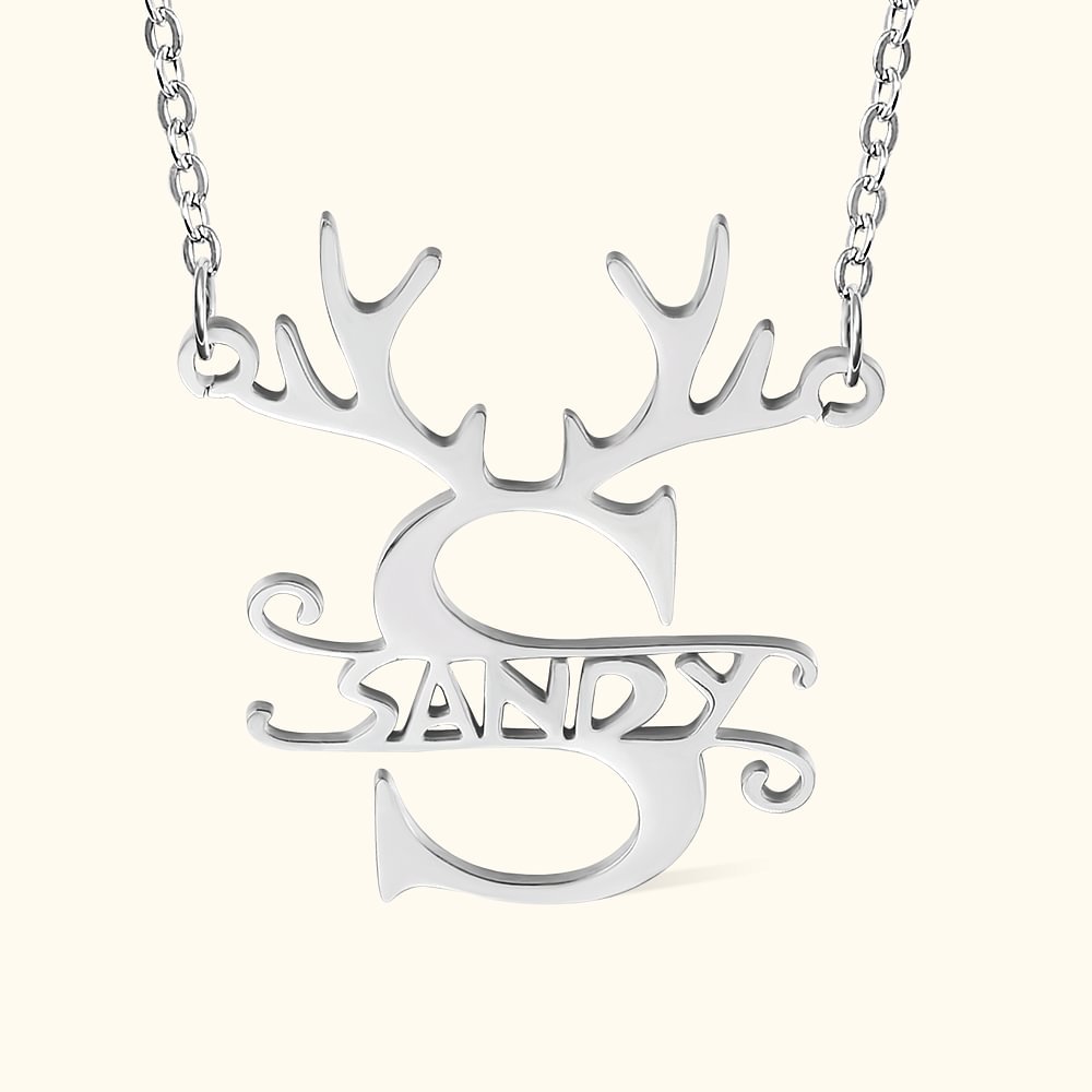 Design con ciondolo a forma di alce con nome o parola al centro. Nome o parola personalizzati con un massimo di 9 lettere. Questa collana è una perfetta fusione di carino e trendy. Potremmo avere una parola o un nome da incidere, ed è il vostro simbolo unico. Incidete il nome o la parola per farle sapere che è sempre legata a voi. Quando indosserà questa collana, avrà un promemoria della sua forza e del fatto che tu sei sempre presente per lei.