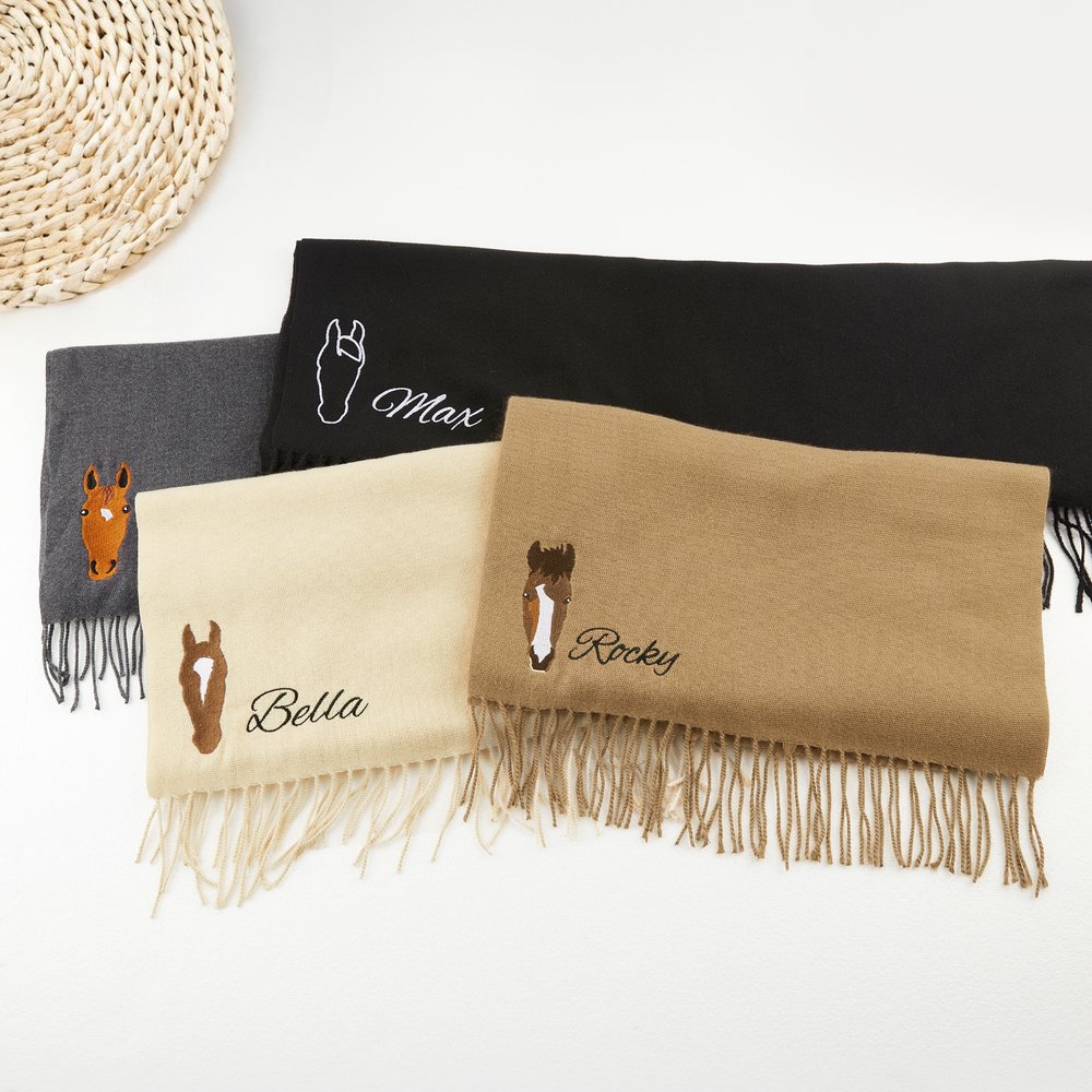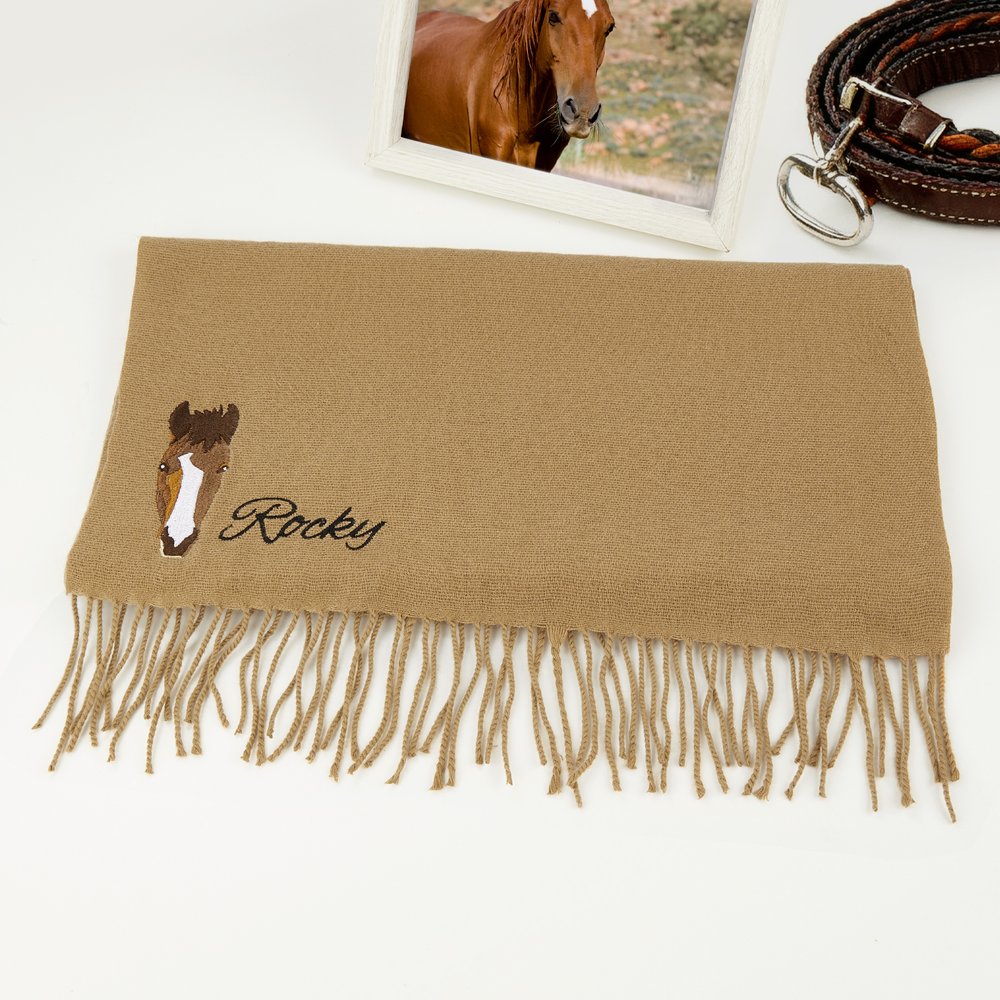 Personalizzato ricamato faccia di cavallo Silhouette morbida sciarpa calda con nome Equestre gioco giorno regalo di Natale per gli amanti del cavallo