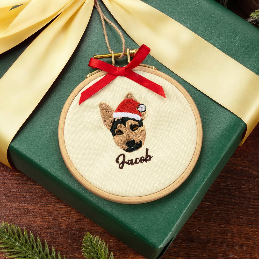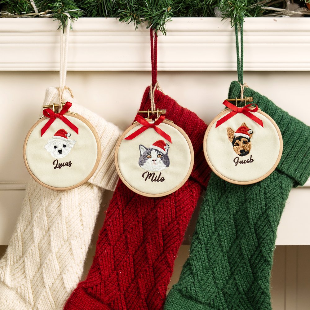 Realizzato con filo da ricamo di prima qualità, il disegno è denso, vibrante e resistente allo sbiadimento o al pilling, in modo che il ritratto ricamato dell'animale domestico rimanga vivido anno dopo anno. Il telaio in legno di bambù ha una venatura liscia e naturale. È rifinita con cura per evitare deformazioni o crepe, creando un ornamento durevole che durerà per molte stagioni natalizie.