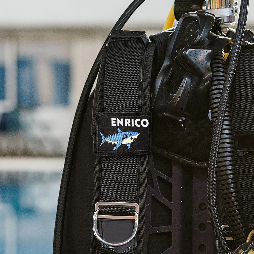Questa targhetta di identificazione BCD per le immersioni offre tre diversi modelli di squali, vivaci e simpatici o freschi e giocosi, per soddisfare le diverse esigenze estetiche. 27 tipi di fili da ricamo sono ricchi di colori, che brillano in modo unico sott'acqua. È inoltre possibile personalizzare il nome ricamato in 5 caratteri.