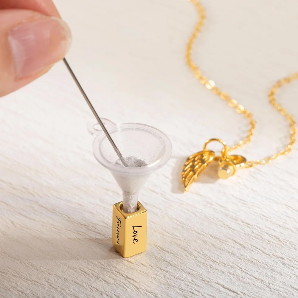 Questa collana con urna dal design elegante è un modo discreto per custodire il ricordo di una persona o di un animale caro. Il ciondolo in acciaio inossidabile può contenere una piccola quantità di ceneri, capelli o altri elementi simbolici. L’apertura a vite garantisce una chiusura sicura e duratura nel tempo.
