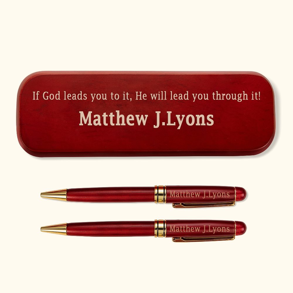 Questo regalo personalizzato è molto più di un semplice set di penne: è un ricordo prezioso che verrà conservato per gli anni a venire. La scritta incisa e le parole personalizzate aggiungono un tocco di delicatezza, rendendolo un ricordo significativo dell'occasione speciale e del legame che condividete con il destinatario.