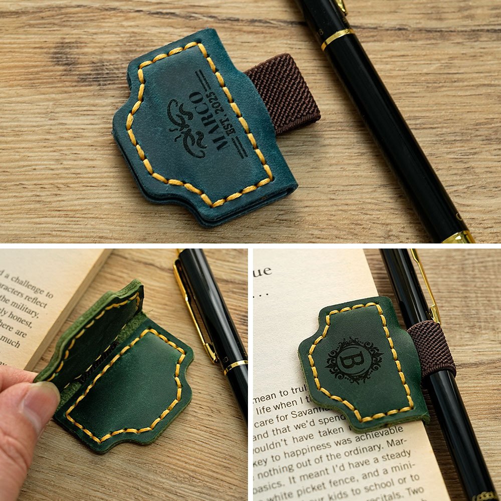 Realizzato in pelle resistente, con bordi tagliati con precisione e cuciture curate, il segnalibro è solido e affidabile, con una finitura dall'aspetto lussuoso. Ogni pezzo è cucito e inciso con il testo personalizzato che scegli, per un risultato sempre nitido e chiaro. Il design magnetico ne permette il fissaggio tra le pagine senza timore di scivolamenti o smarrimenti.