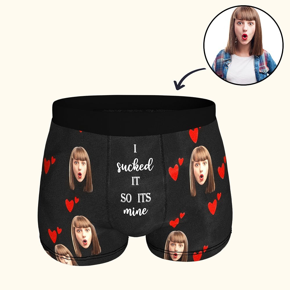 Il messaggio "I Sucked It So It's Mine" (l'ho succhiato, quindi è mio) sul boxer aggiunge un tocco sfacciato e giocoso. Abbinato ai cuori d'amore, crea un'atmosfera divertente e spensierata. È un modo delizioso per esprimere il vostro senso dell'umorismo e dimostrare al vostro partner che vi è caro.
