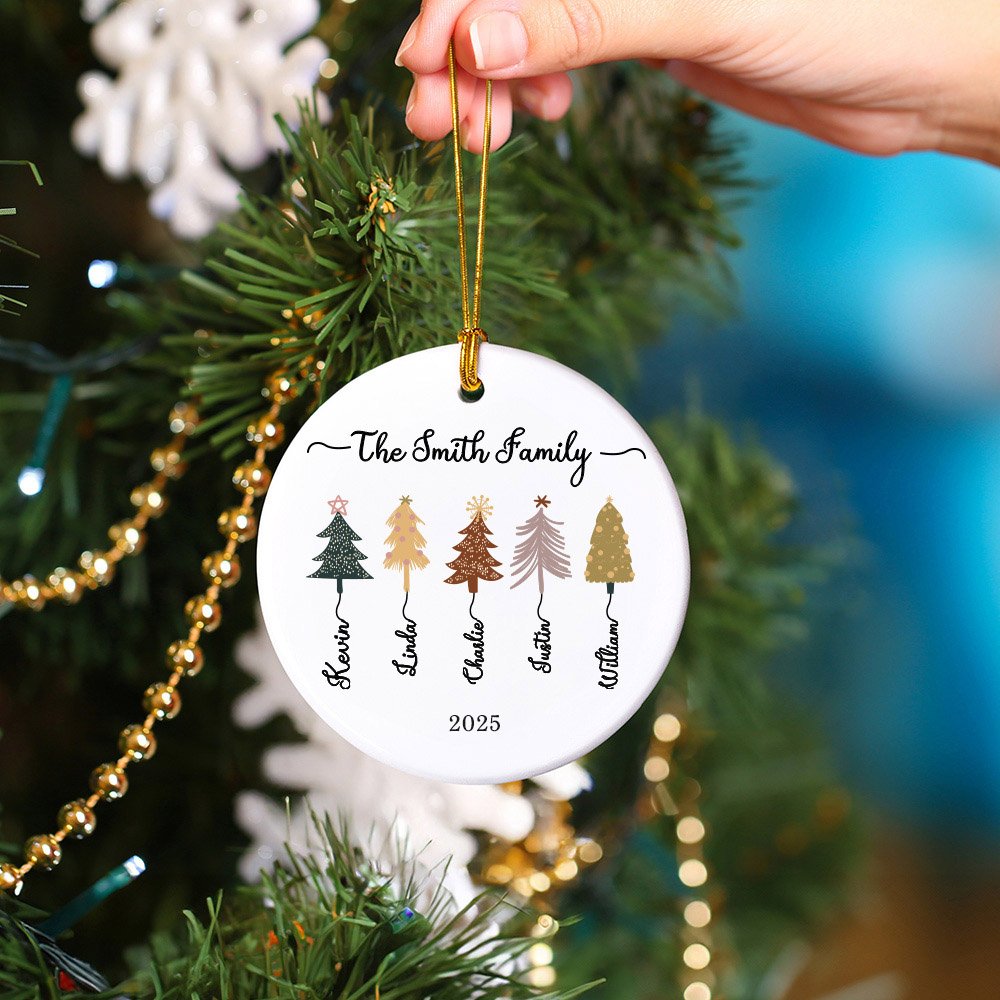 Il nostro ornamento presenta diversi disegni di alberi di Natale che conferiscono un tocco distintivo al vostro arredamento natalizio. Con la possibilità di personalizzarlo con i nomi dei membri della famiglia e l'anno, diventa un caro ricordo per i propri cari. Questo ornamento celebra l'unione, rendendo ogni Natale memorabile.