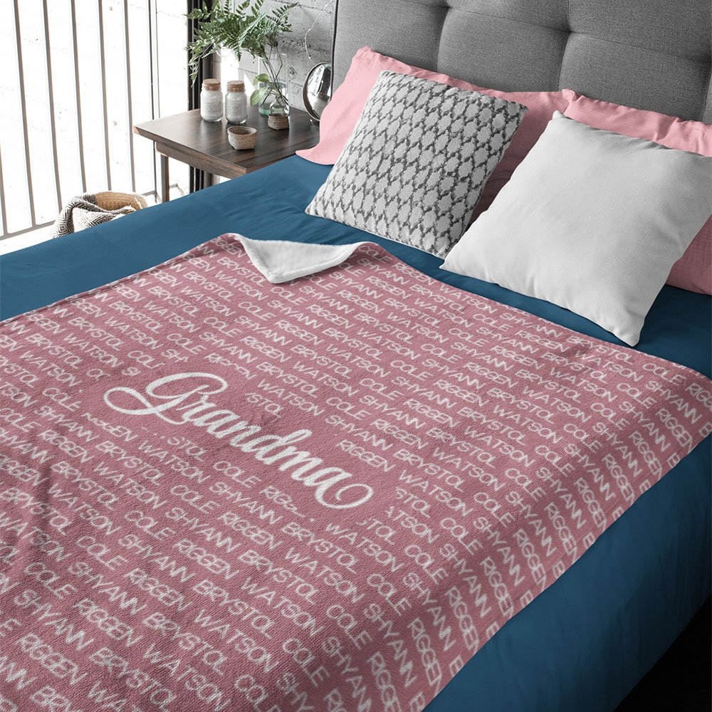 Con un design creativo e personalizzato, è possibile personalizzare 1-20 nomi di bambini sulla coperta, disponibile in due font; i nomi dei bambini circondano il nome dei nonni e regalano una sensazione di calore e attenzione.