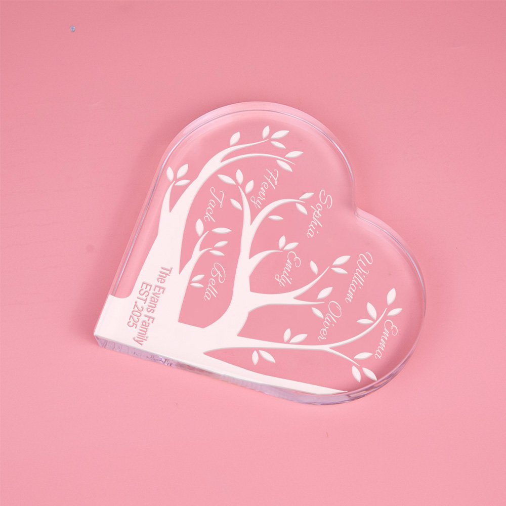 La targa in acrilico dell'albero genealogico è una decorazione commemorativa per la casa, che simboleggia l'importanza della famiglia e l'interconnessione tra le generazioni. Può essere esposta con orgoglio in salotto, in camera da letto, in un armadio o su uno scaffale. È un promemoria costante dell'amore, dell'unità e dei ricordi condivisi in famiglia.
