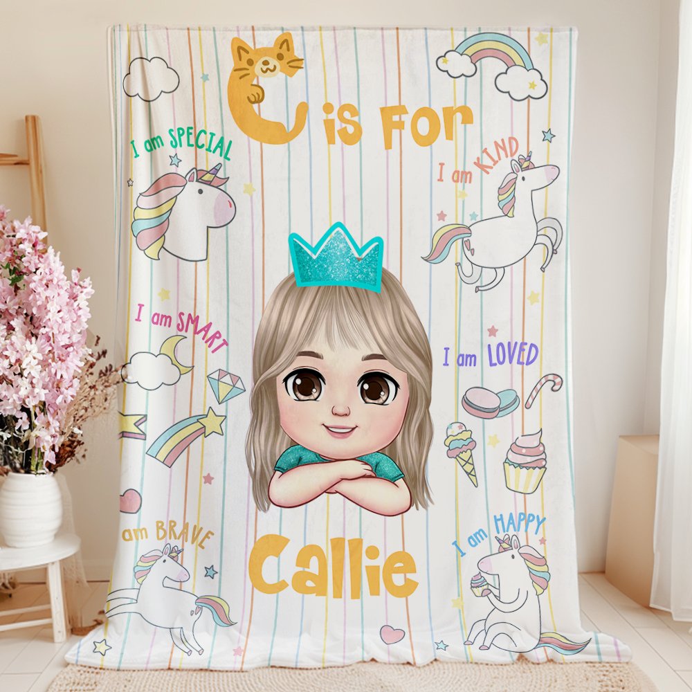 La coperta è caratterizzata da messaggi commoventi e disegni adorabili, che simboleggiano amore, famiglia e calore. Questa coperta personalizzabile combina arcobaleni, stelle ed elementi stravaganti come unicorni o treni con il nome e le iniziali del bambino. È un regalo unico, perfetto per i bambini che amano i disegni divertenti e fantasiosi.