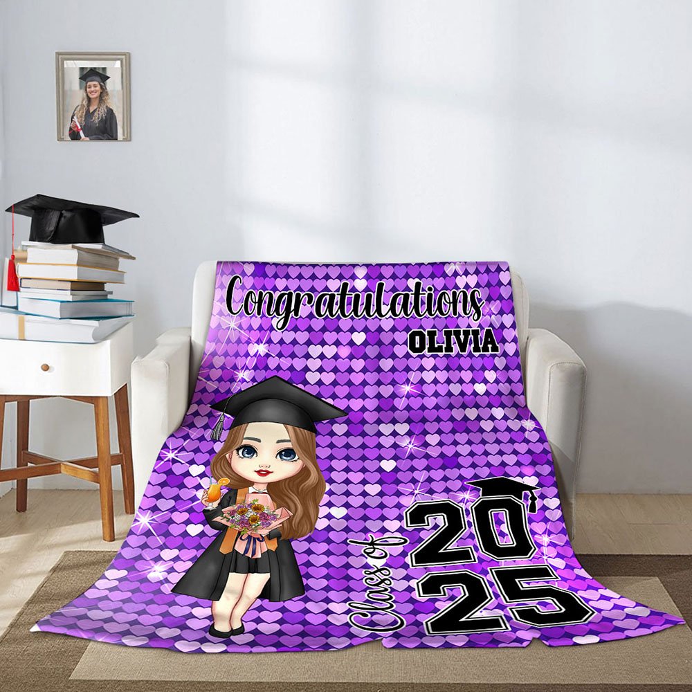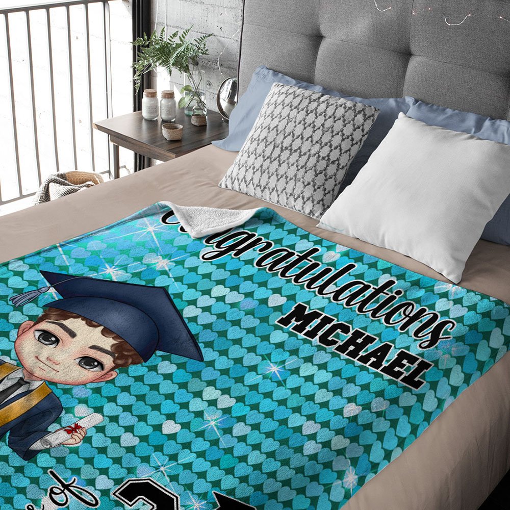 Con il tema della stagione delle lauree, questa coperta può essere disegnata con il vostro simpatico personaggio dei cartoni animati in base all'immagine della vostra laurea, e con un nome e un anno di laurea personalizzati. I personaggi dei cartoni animati sono vivaci e pieni di giovinezza e catturano perfettamente la gioia e il senso di realizzazione della laurea. La coperta è disponibile in 12 colori per soddisfare le diverse esigenze estetiche.