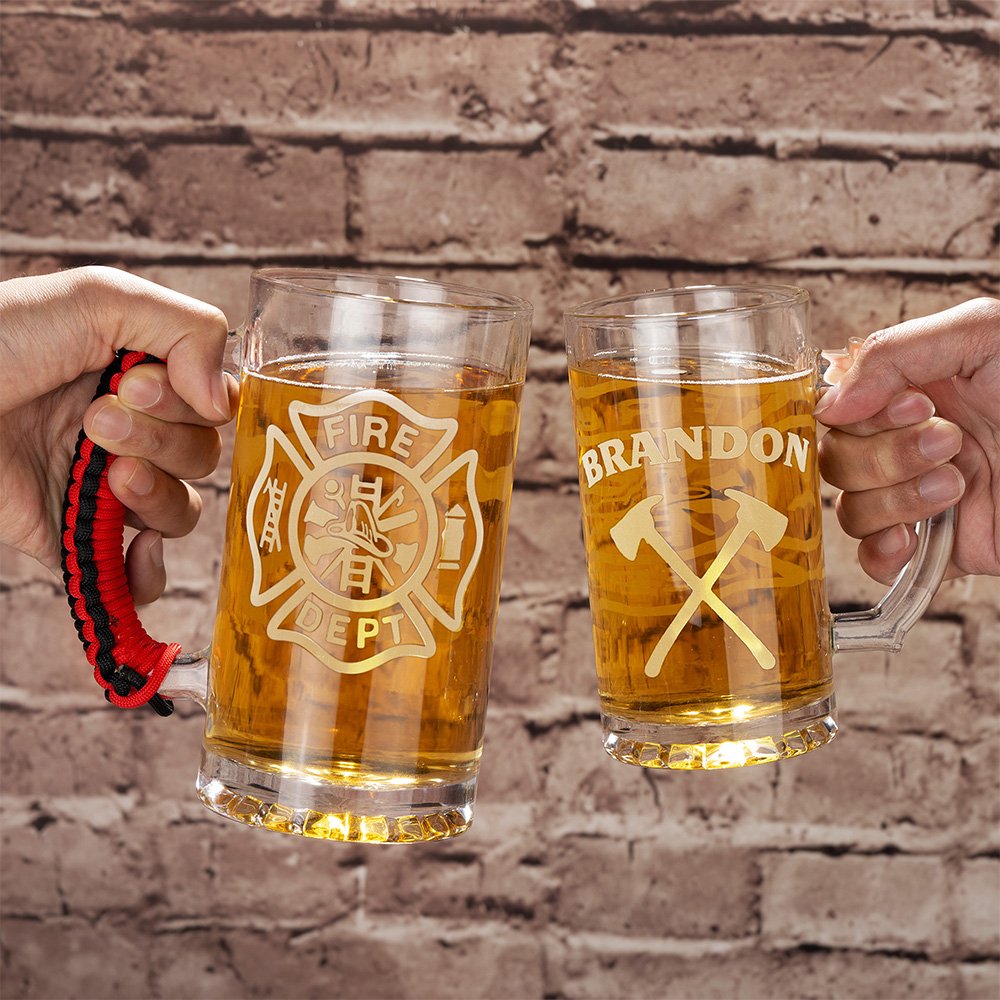 Questo boccale di birra presenta un design a tema pompieristico altamente riconoscibile, con un'ascia o una sagoma piena di forza, che simboleggia il coraggio e la tenacia dei vigili del fuoco. Il corpo della tazza può essere personalizzato con i badge con il nome e il numero di matricola, che sono unici e realizzati appositamente. Non è solo un oggetto pratico, ma anche un simbolo di identità e onore.