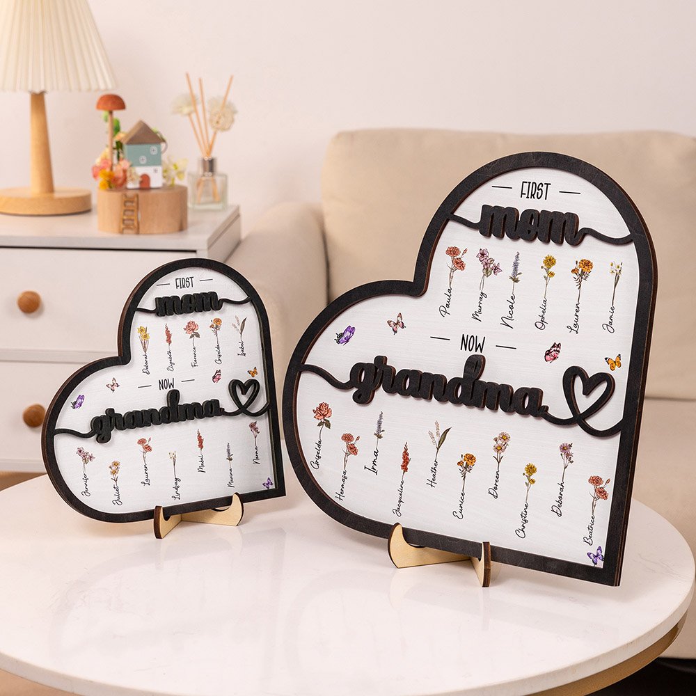 Questo cartello con cornice in legno non è solo un grazioso oggetto d'arredo, ma anche un ricordo prezioso. La nonna o la madre potranno esporlo con orgoglio per ricordare l'amore e l'ammirazione della loro famiglia. Ogni volta che guarderanno questo regalo personalizzato, si ricorderanno del loro particolare legame con voi.