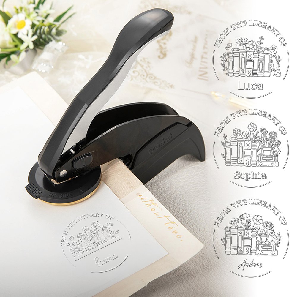 Questo goffratore è caratterizzato da libri e fiori come elementi di design principali, abbinati a nomi e testi personalizzabili, creando uno stile complessivo semplice ed elegante ma distintivo. Il motivo del libro riflette l'identità degli amanti dei libri, mentre gli elementi floreali aggiungono un tocco di delicata bellezza. Il design unico assicura che i motivi in rilievo siano chiari e tridimensionali, consentendo di contrassegnare libri, lettere e altri oggetti con un timbro personalizzato senza danneggiarli, facendo sentire ogni utilizzo come un rituale speciale.