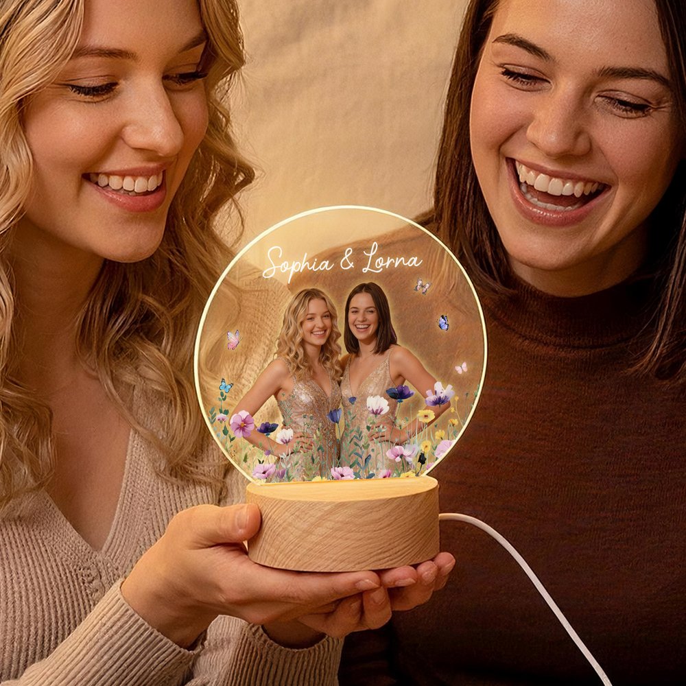 Personalizzato fiore farfalle foto LED acrilico luce notturna Desk Decor Compleanno Anniversario regalo per sorelle Besties