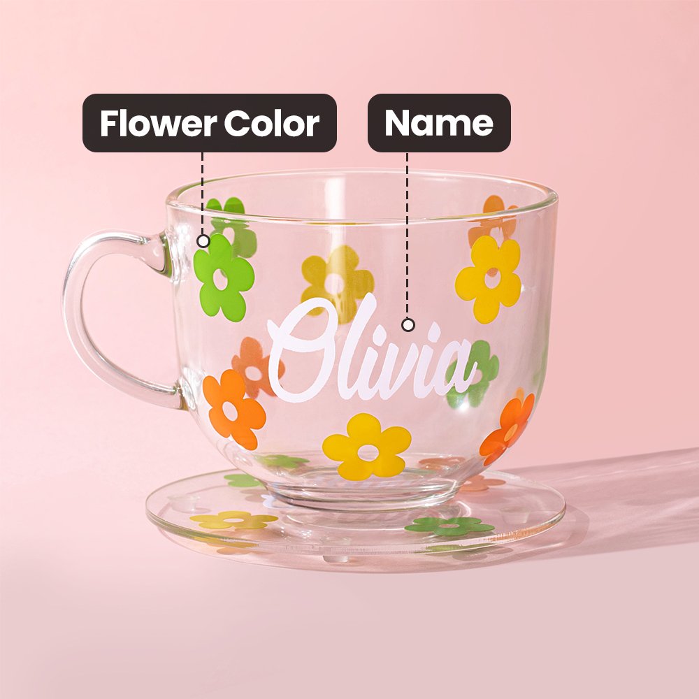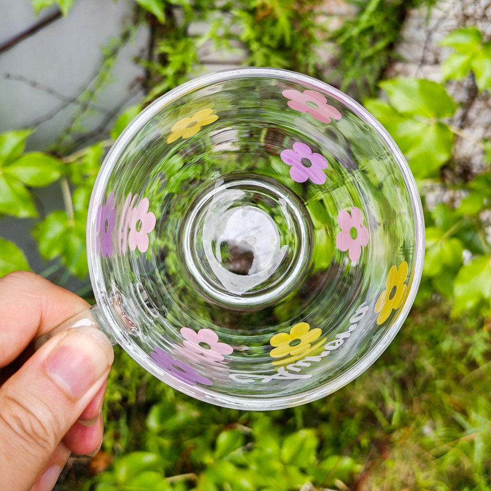 La superficie della tazza di vetro è decorata con molti bei fiori, i suoi colori vivaci e i fiori delicati creano un effetto visivamente rinfrescante e grazioso, offrendo una piacevole esperienza di bere.