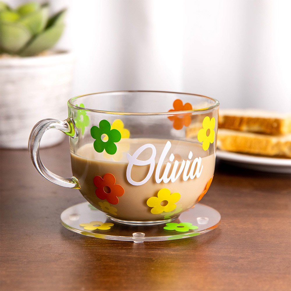 Set di tazze da caffè in vetro personalizzate con nome Decorazione per l'ufficio Regalo di Natale di compleanno per amica ragazza