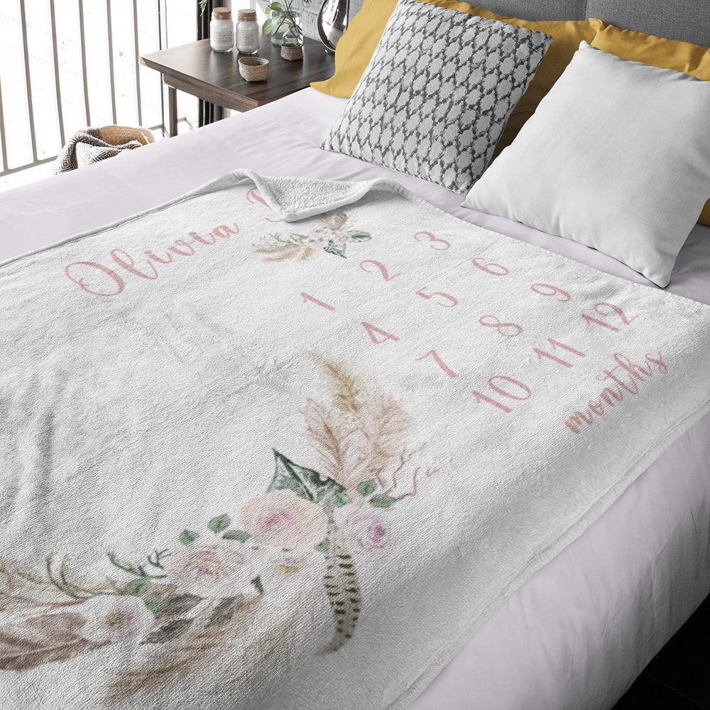 Fiori personalizzati Tracciamento mensile della crescita Coperta morbida e floreale Regalo per la festa del bebè per il neonato