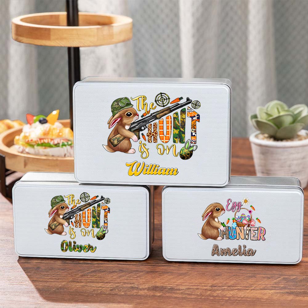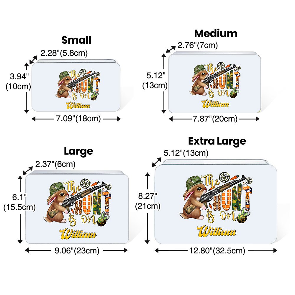 La nostra scatola di biscotti per coniglietti di Pasqua può essere personalizzata con un nome per creare un regalo di festa unico per bambini o famiglie. Quattro misure per soddisfare le vostre esigenze e preferenze.