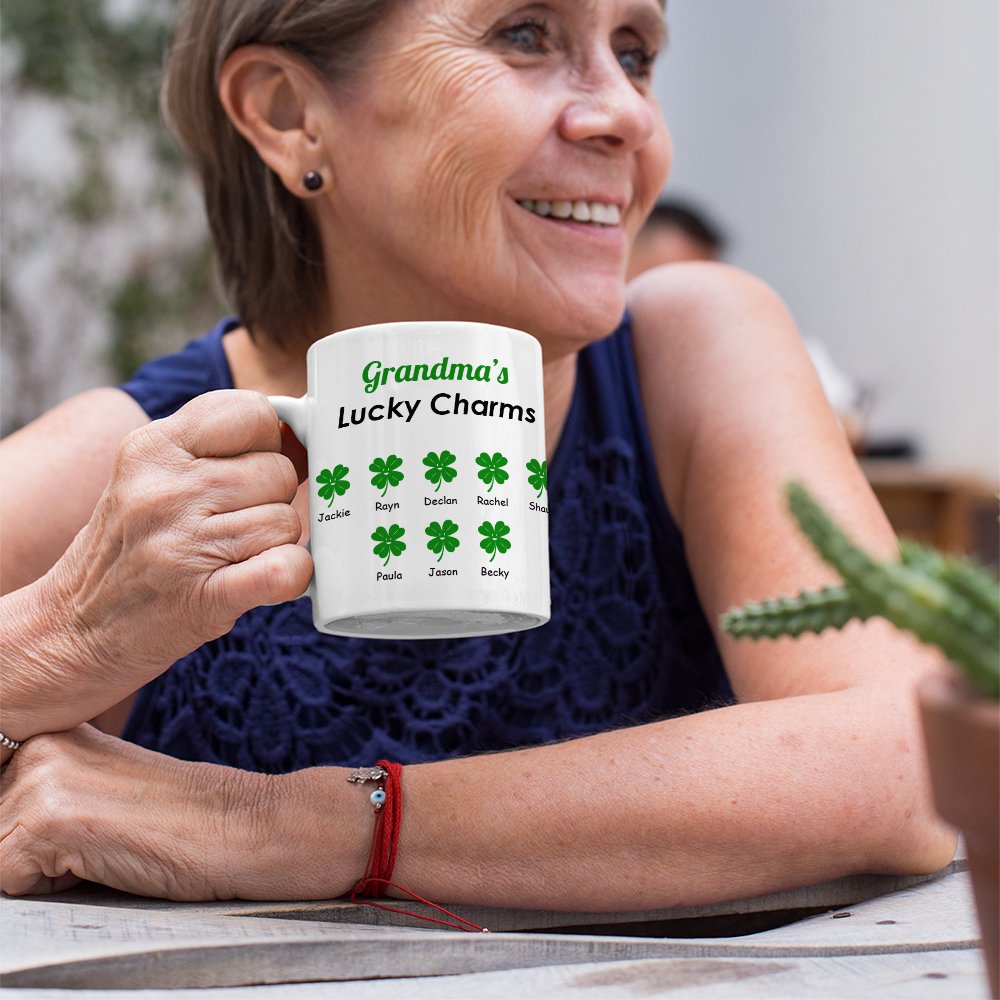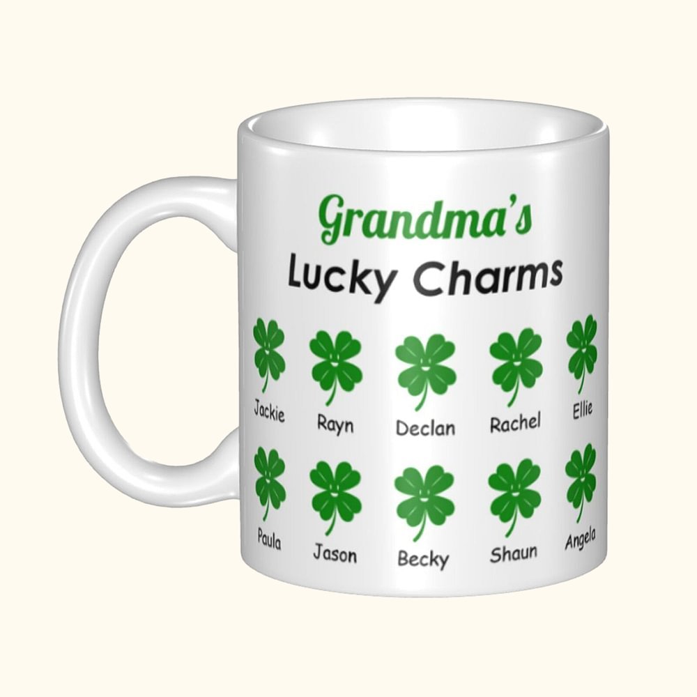 Celebrate la famiglia e l'orgoglio irlandese con questa tazza per il giorno di San Patrizio che trasforma il momento del caffè o del tè della nonna in un momento speciale. Questa incantevole tazza presenta un accattivante design a quadrifoglio e consente la personalizzazione con 1-20 nomi di bambini, rendendo ogni sorso un'esperienza commovente.