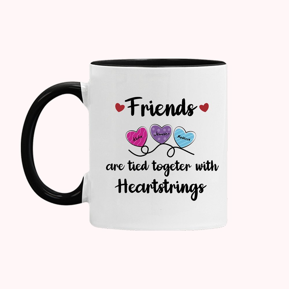La tazza è caratterizzata da una commovente citazione che recita "Gli amici sono legati dal cuore", che serve a ricordare costantemente il profondo legame tra voi e il vostro amico. Per renderla ancora più speciale, la tazza può essere personalizzata con 2-6 nomi, che simboleggiano l'indissolubile legame di amicizia reciproca.