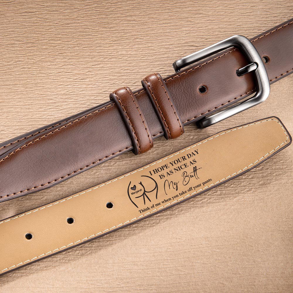Questa cintura è disponibile in quattro colori diversi e, grazie alla chiusura in argento, non solo mette in risalto un senso di lusso low-key, ma rivela anche un temperamento tranquillo. La scritta "I Hope Your Day Is As Nice As My Butt" è incisa sulla fibbia per aggiungere un tocco di creatività, e si può anche personalizzare il nome sulla cintura per renderla ancora più speciale.