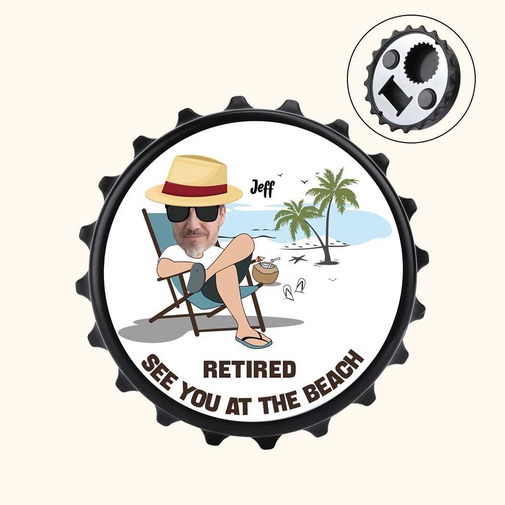 La pensione è un momento in cui ci si può godere le cose che non si sono mai potute fare prima. Questo prodotto si ispira ad alcune delle attività preferite dai pensionati. Scegliete la scena giusta in base all'hobby del vostro pensionato. Le scene per gli uomini includono spiaggia, campeggio e pesca; giardinaggio, crociera e spiaggia per le donne. Caricate una foto chiara del pensionato e potrete creare un regalo di pensionamento unico, che può funzionare anche come magnete da frigo e apribottiglie.