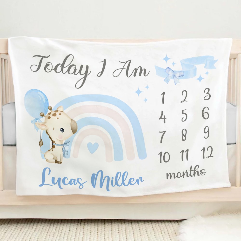 Personalizzate questa coperta con nodo a fiocco arcobaleno a forma di giraffa con il nome del vostro bambino, per renderla un ricordo unico che vi permetterà di vedere il vostro bambino raggiungere individualmente le prossime tappe della crescita. Potrete usare questa coperta per scattare foto uniche del primo anno di vita del vostro bambino, da 1 mese a 12 mesi e oltre, catturando questo momento speciale e adorabile!