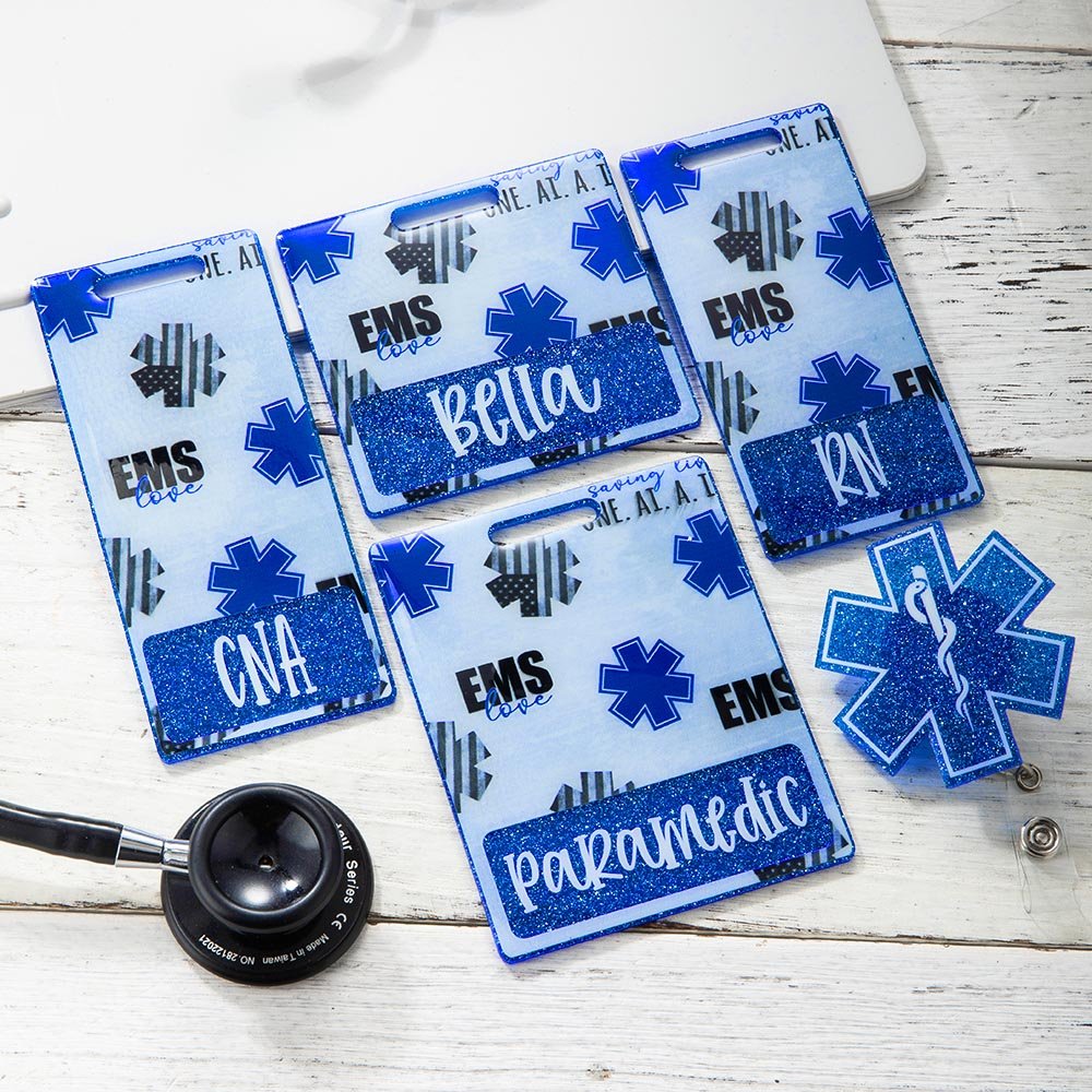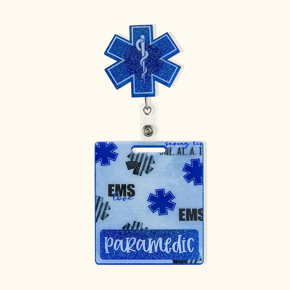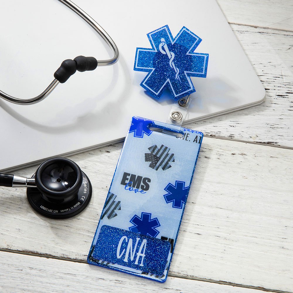 Aggiungete un tocco speciale al vostro badge di lavoro con la nostra bobina di badge EMS personalizzata con glitter! È possibile personalizzare il nome del destinatario su questo prodotto. Progettato ispirandosi al classico simbolo della Stella della Vita e ornato dalle intramontabili Stelle e Strisce americane, questo portabadge personalizzato è tanto bello quanto funzionale. Disponibile in quattro misure e con una splendida stampa su un lato, è l'accessorio perfetto per infermieri, soccorritori e paramedici.