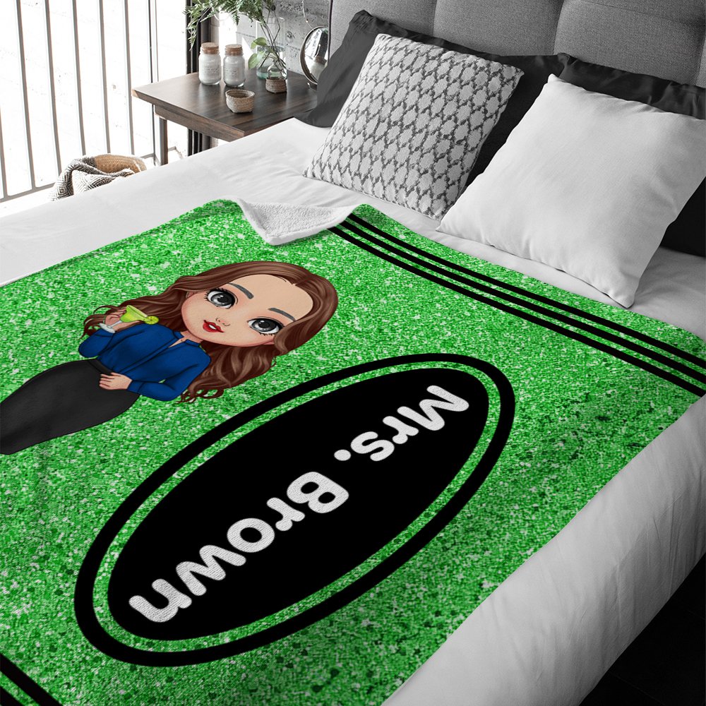 La nostra coperta utilizza colori brillanti e le linee dei pastelli sono più uniche e simboliche, colorate e divertenti. I personaggi dei cartoni animati personalizzabili e le imitazioni di paillettes aggiungono fascino visivo e divertimento. È possibile abbinare liberamente l'immagine del cartone animato dell'insegnante e aggiungere un nome per creare una coperta unica per esprimere rispetto e gratitudine all'insegnante.