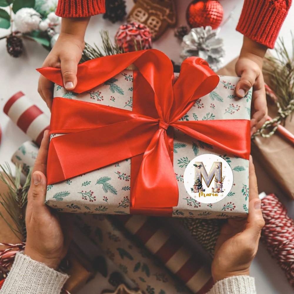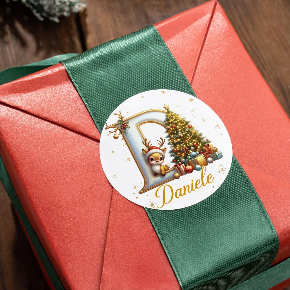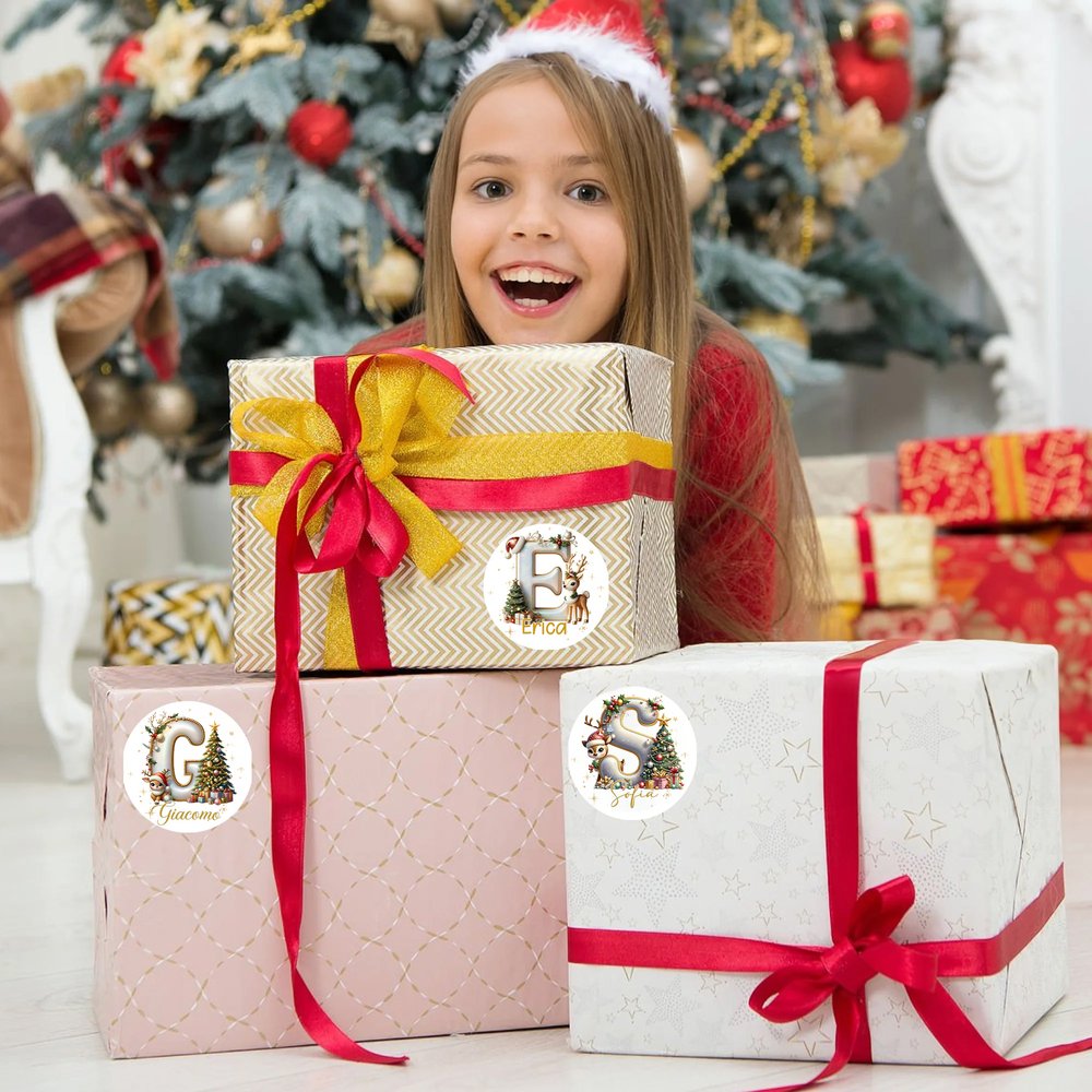 I dettagli dorati, la renna giocosa e l’albero di Natale creano un aspetto caldo e festoso. Le iniziali e i nomi personalizzati aggiungono un tocco di eleganza e rendono gli adesivi divertenti ma raffinati, perfetti per dare un tocco unico e speciale ai tuoi regali di Natale.
