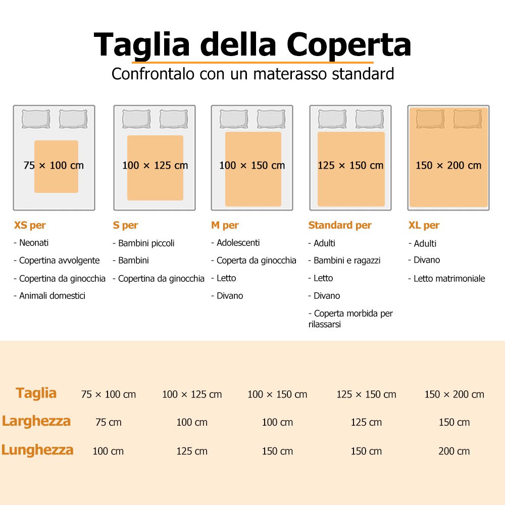 | Dimensione: | Coperta in pile: 75 × 100 cm, 100 × 125 cm, 100 × 150 cm, 125 × 150 cm e 150 × 200 cm, Coperta Sherpa: 100 × 125 cm, 125 × 150 cm e 150 × 200 cm |