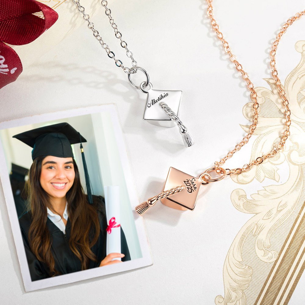 Il ciondolo di questa collana ha lo stile di un cappello di laurea, che segna il "traguardo" della laurea. Aggiungete il vostro nome al ciondolo per rendere la collana unica. Sono disponibili tre diversi colori tra cui scegliere. Le collane sono adatte a diversi colori di gonne, abiti, camicie e cappotti. Per distinguervi dalla massa, attirare l'attenzione di tutti e rendervi ogni giorno più attraenti.