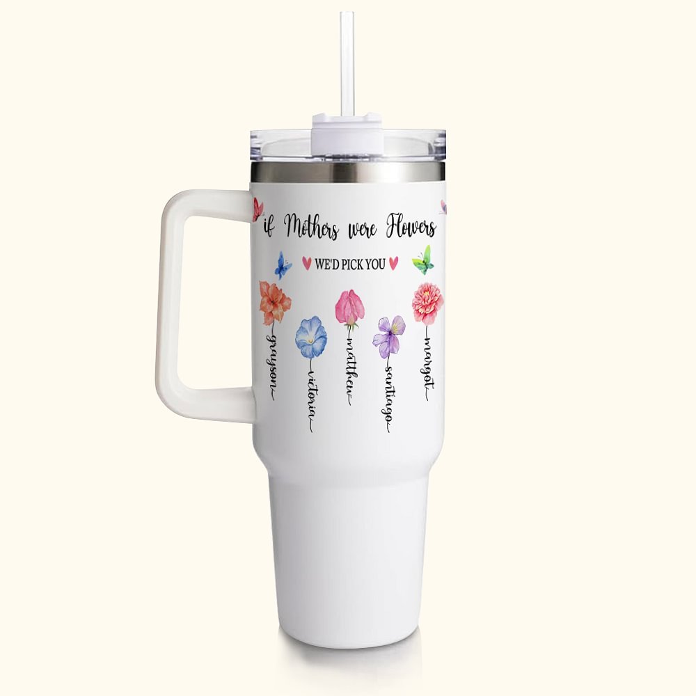 Questo tumbler presenta 1-14 bellissimi fiori di compleanno, ogni fiore rappresenta il mese di nascita del bambino e può essere personalizzato con il suo nome, creando un bicchiere unico e significativo che esprime amore e affetto. L'ammirazione di una madre o di una nonna.