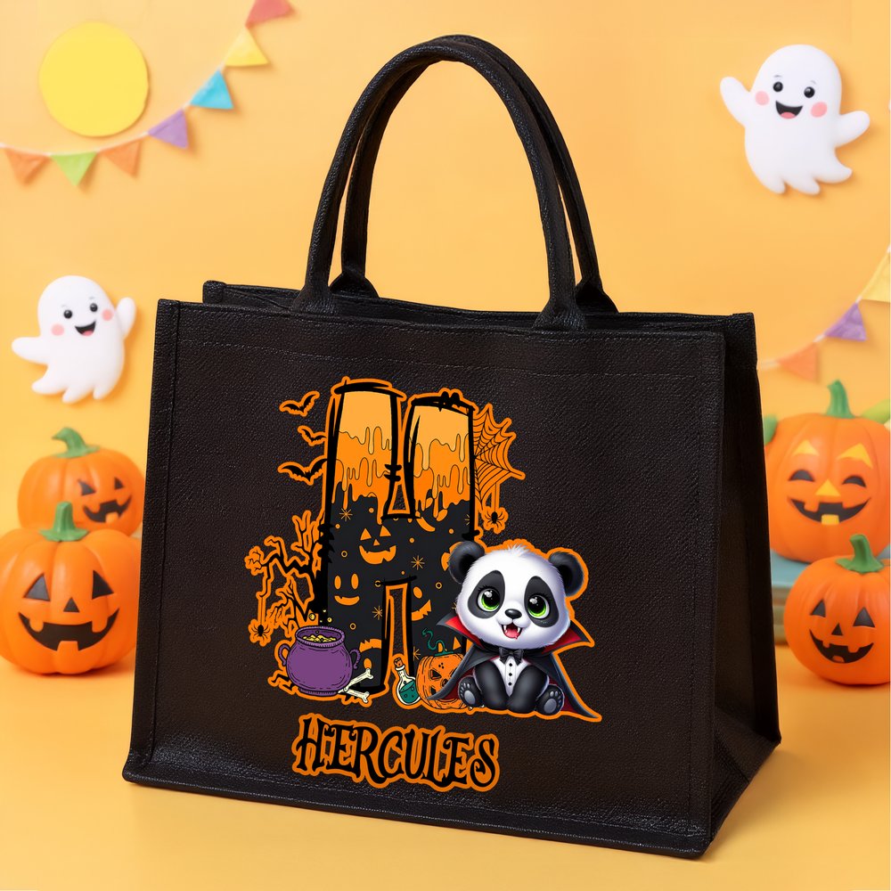 Questa tote bag presenta un motivo animale di Halloween e può essere personalizzata con iniziali a tema Halloween, creando un'atmosfera misteriosa, spettrale e gioiosa. Stampate il vostro nome per creare un accessorio di Halloween unico.