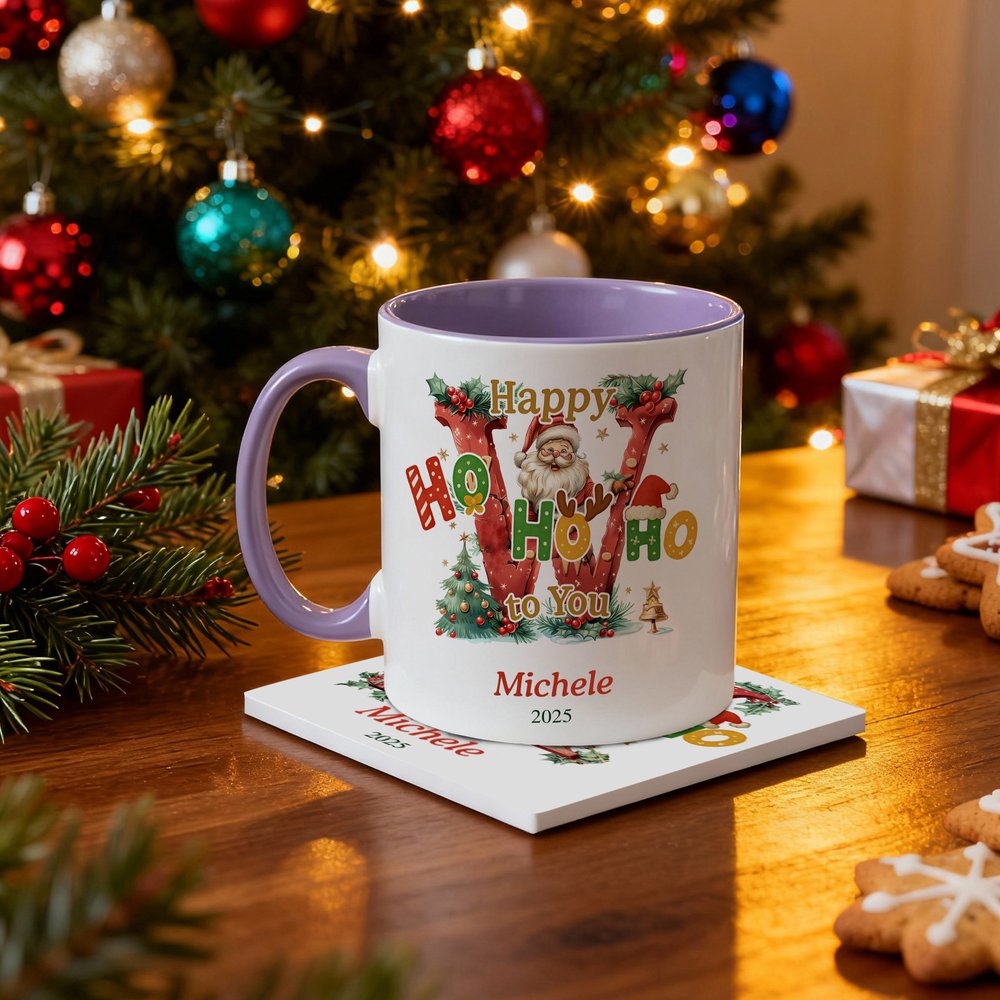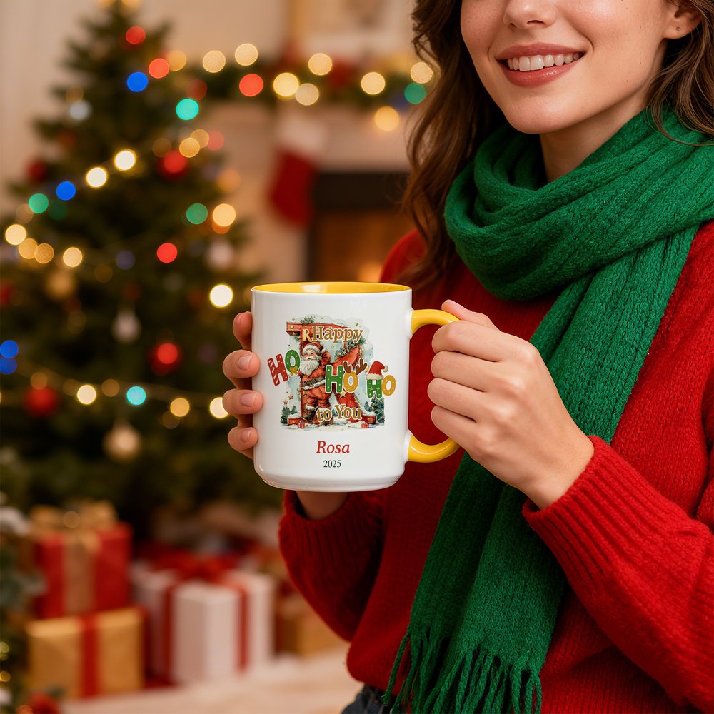 Questa tazza da caffè è decorata con il testo "Happy HoHoHo to You" e può essere personalizzata con nomi e anni, rendendola unica e speciale. Il simpatico "HoHoHo" richiama la risata di Babbo Natale, trasmettendo allegria natalizia e un tocco di personalità, perfetta per immergersi nello spirito delle feste.