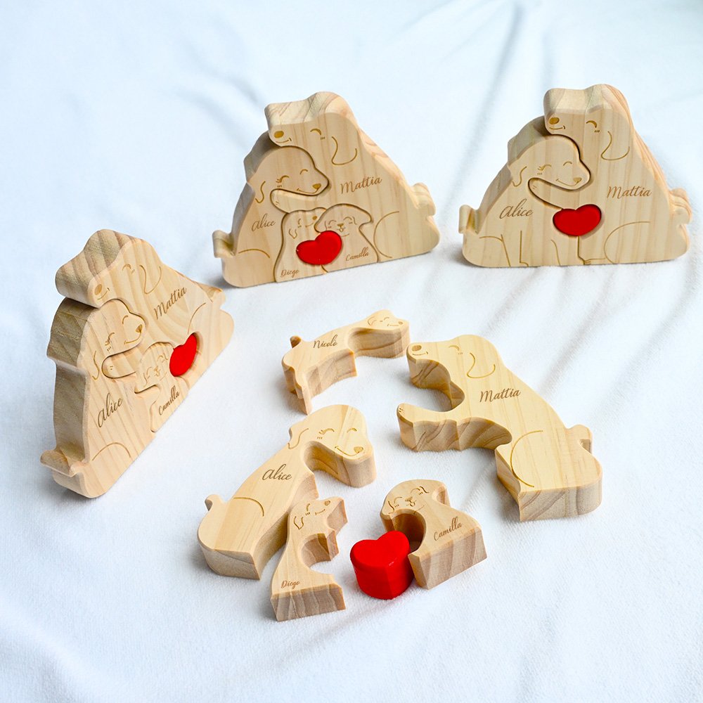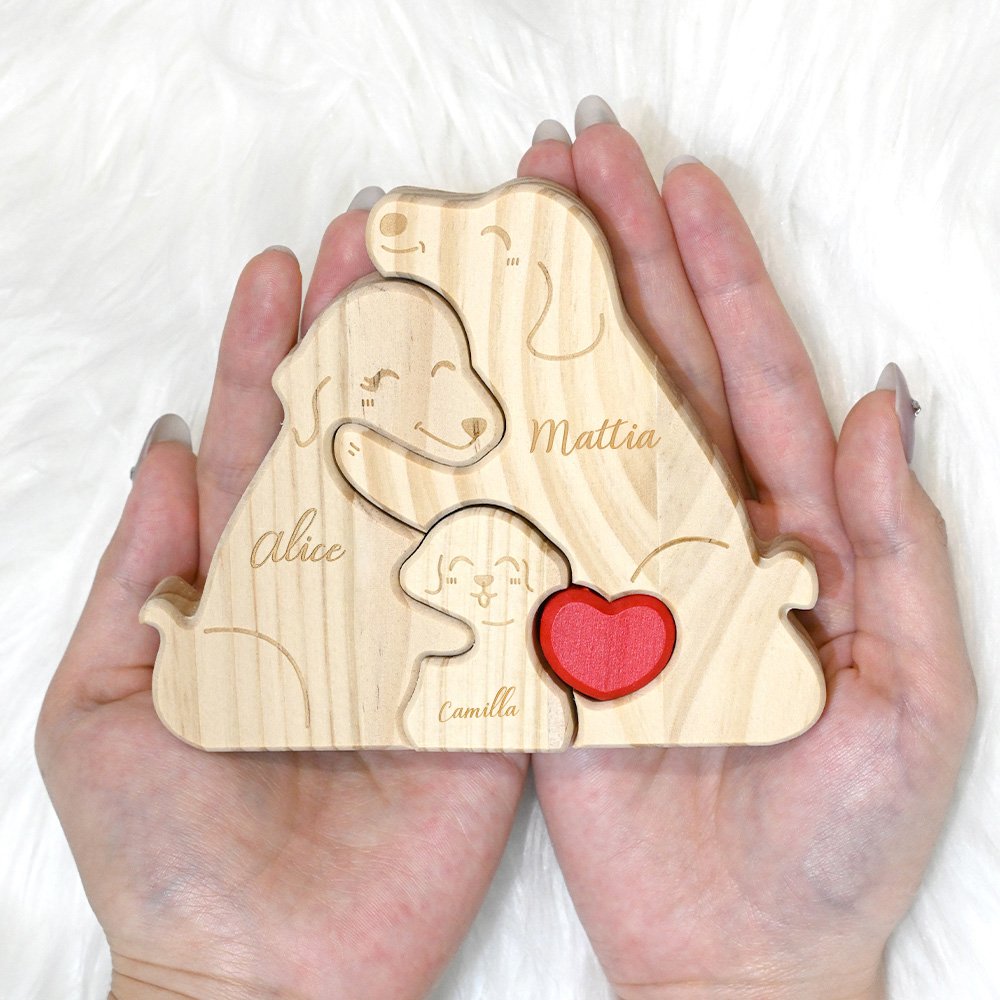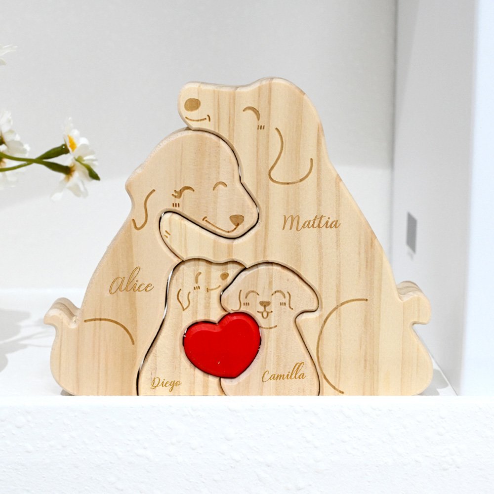 Questo puzzle in legno raffigura cani in stile cartone animato che si abbracciano con affetto, tra cui una mamma cane, un papà cane e un cucciolo, con un cuore rosso al centro. Il design, che trasmette calore e amore, simboleggia la vicinanza familiare e conquista i cuori di tutte le generazioni. Può essere personalizzato con 2-5 cani, ognuno con il proprio nome, per rappresentare i membri della famiglia, aggiungendo un tocco unico e speciale.