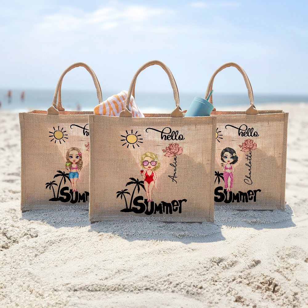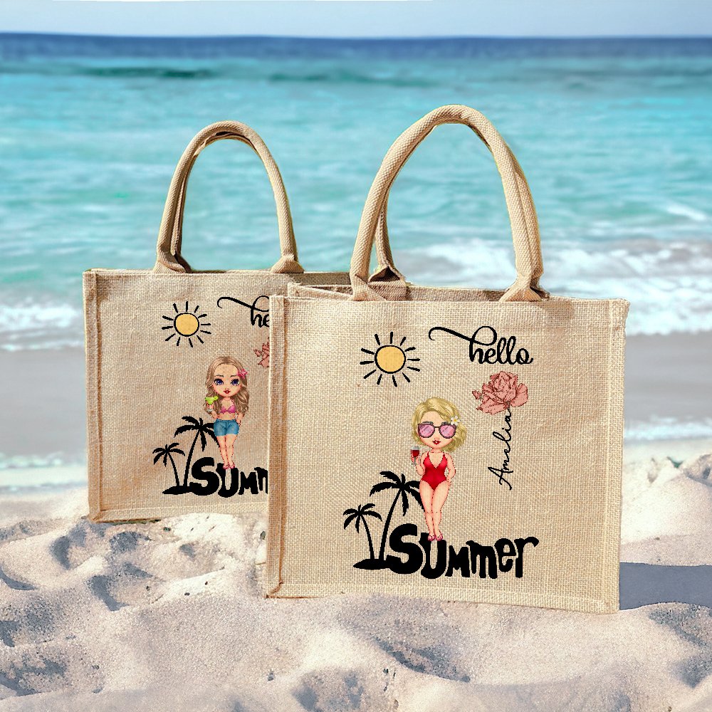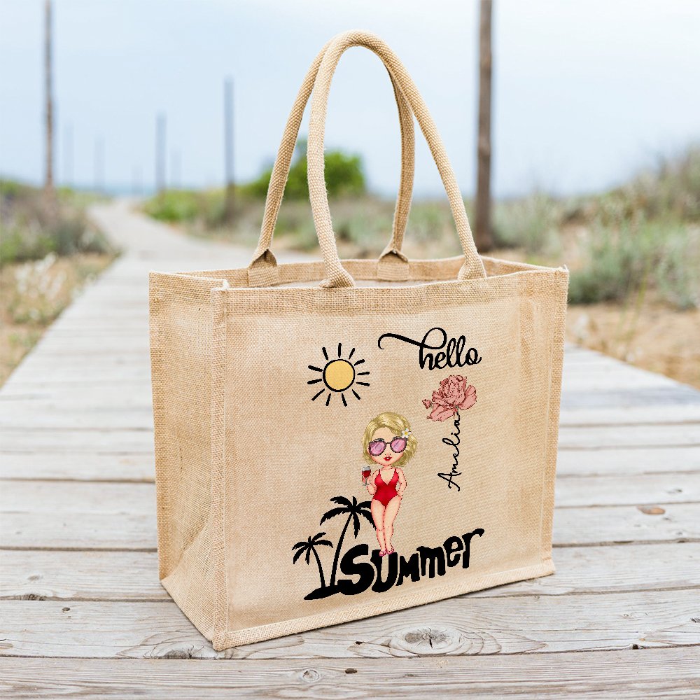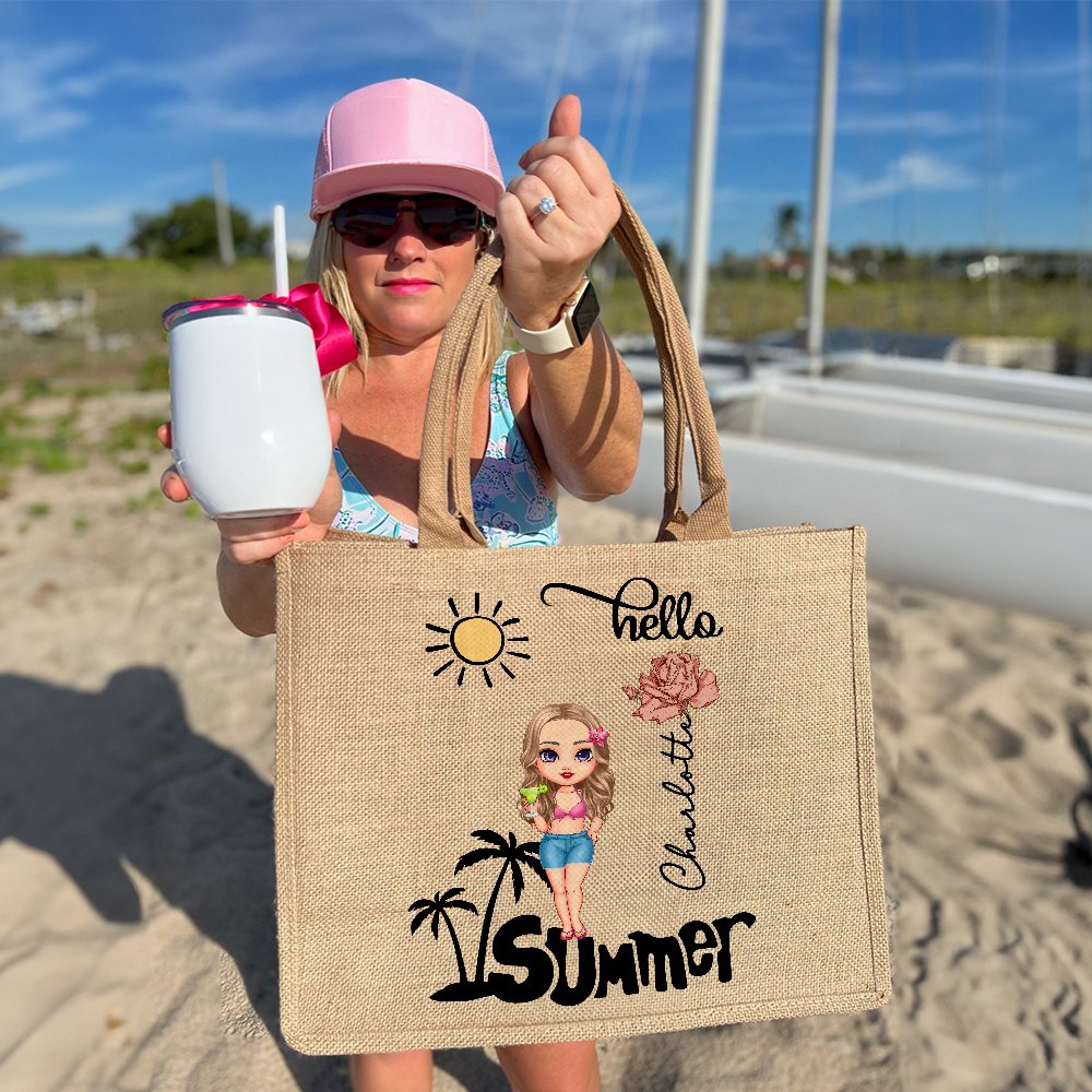 Questa tote bag in iuta non è solo una borsa. È una tela per la vostra individualità. Con il simpatico disegno di un personaggio dei cartoni animati che riporta il nome e il fiore di nascita del destinatario, è un accessorio unico che aggiunge divertimento ed estrosità.
