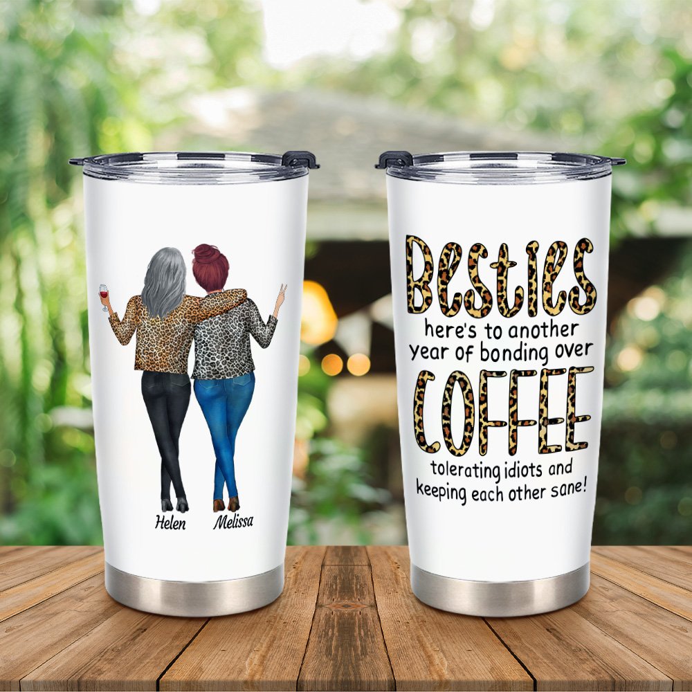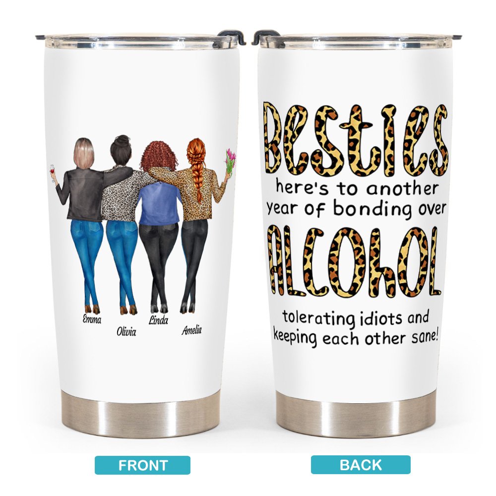 This phrase “Besties/best bitches/sistas/sisters, here's to another year of bonding over alcohol tolerating idiots and keeping each other sane!” is printed on our tumbler. With this humorous quote, you'll be sure to laugh and raise your tumblers when you give them to your besties on birthday. Toast to your friendship for past and future!