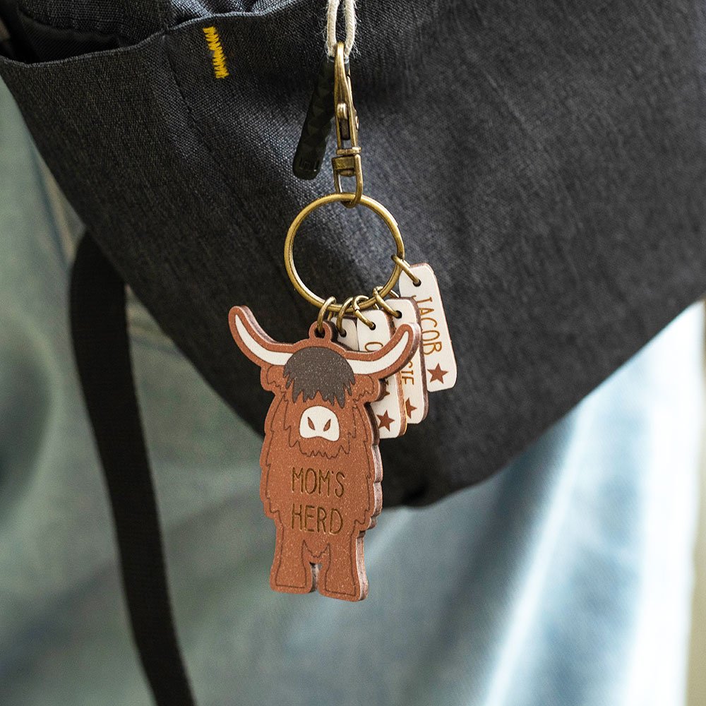 L'elemento della mucca highland rappresenta l'unità e il coraggio. L'utilizzo di questo elemento per personalizzare un portachiavi unico può evidenziare il temperamento della famiglia. Potete scegliere tra tre stili di piccoli accessori e personalizzare il testo e il nome. Credete che sotto la vostra creazione ci sarà un meraviglioso regalo portachiavi!