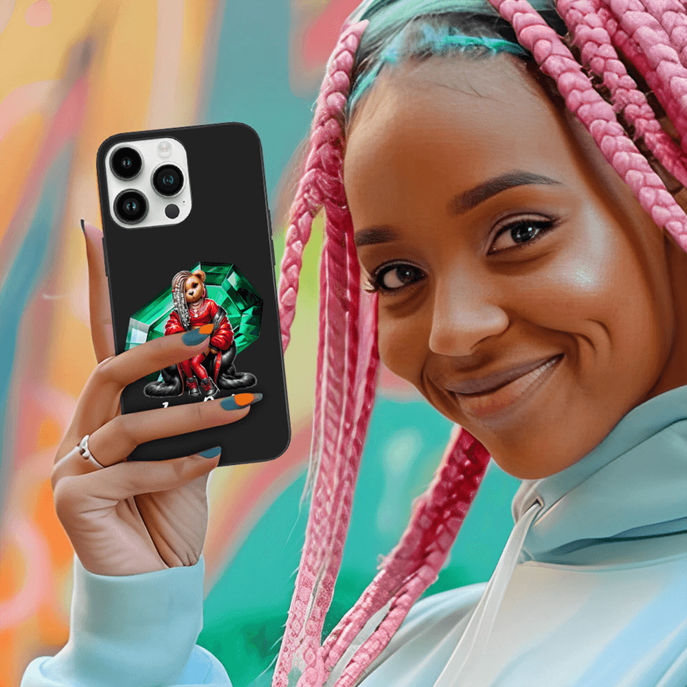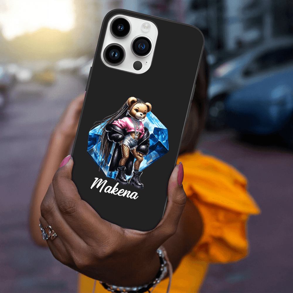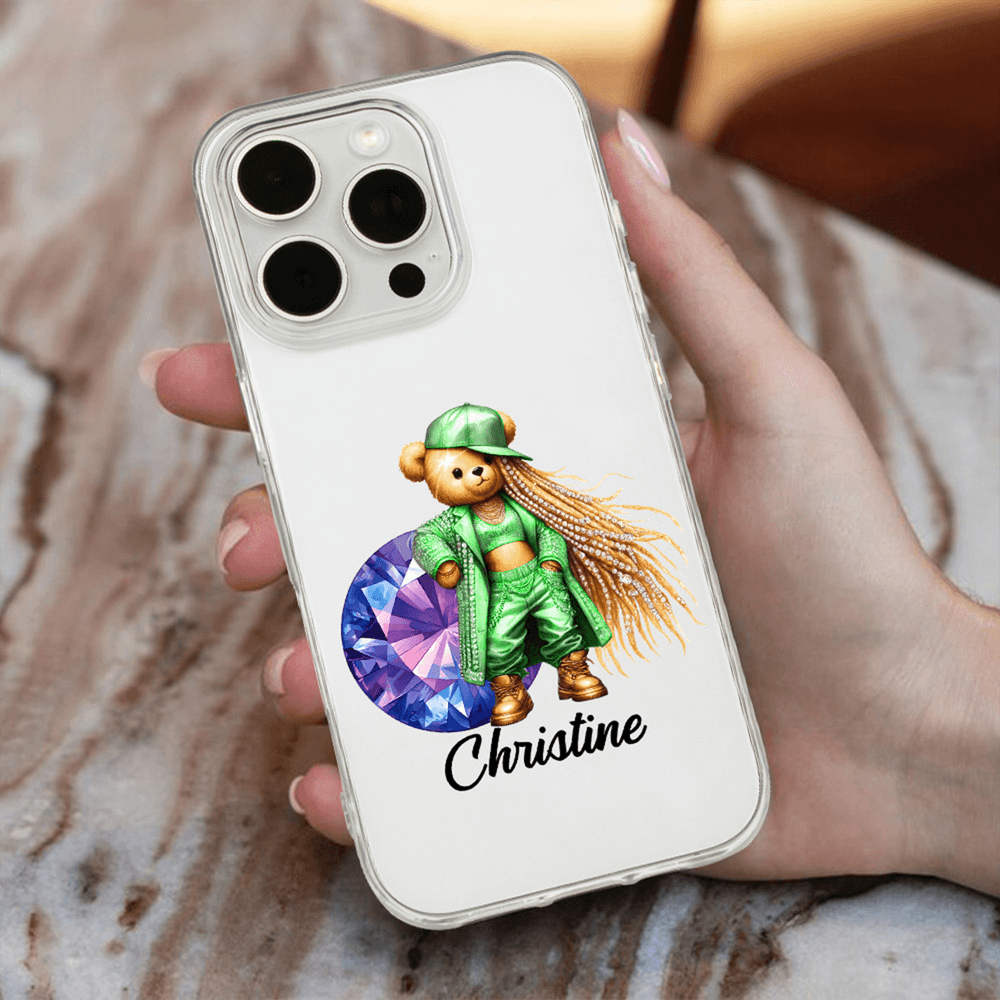 Questa custodia per telefono è caratterizzata da un disegno di un orso hip-hop di ispirazione acquerello dipinto a mano in modo unico. L'orso è ornato da una catena d'oro esagerata e da accessori di tendenza. Sono disponibili pietre di nascita e nomi o brevi frasi personalizzabili, che combinano in modo audace lo stile street con elementi dolci per creare una dichiarazione personalizzata per le ragazze hip-hop.