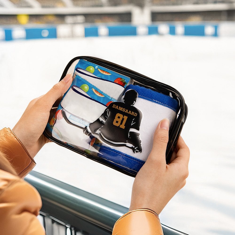 Personalizzato Hockey Athlete Character Clear Snack Bag con nome e numero Compleanno Accessori Sportivi Regalo per gli amanti dell'Hockey