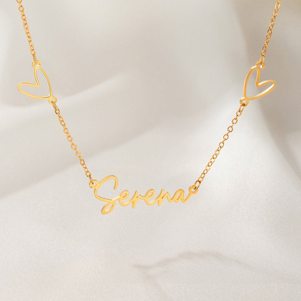 Questa collana incarna l'essenza dell'amore e dell'esclusività con un design minimalista. La catena è collegata da più cuori cavi e il ciondolo rappresenta il vostro nome, presentando un logo unico ed esclusivo. Il design complessivo è caratterizzato da linee morbide, non esagerate e non raffinate, che mostrano il temperamento e il gusto unico di chi le indossa.