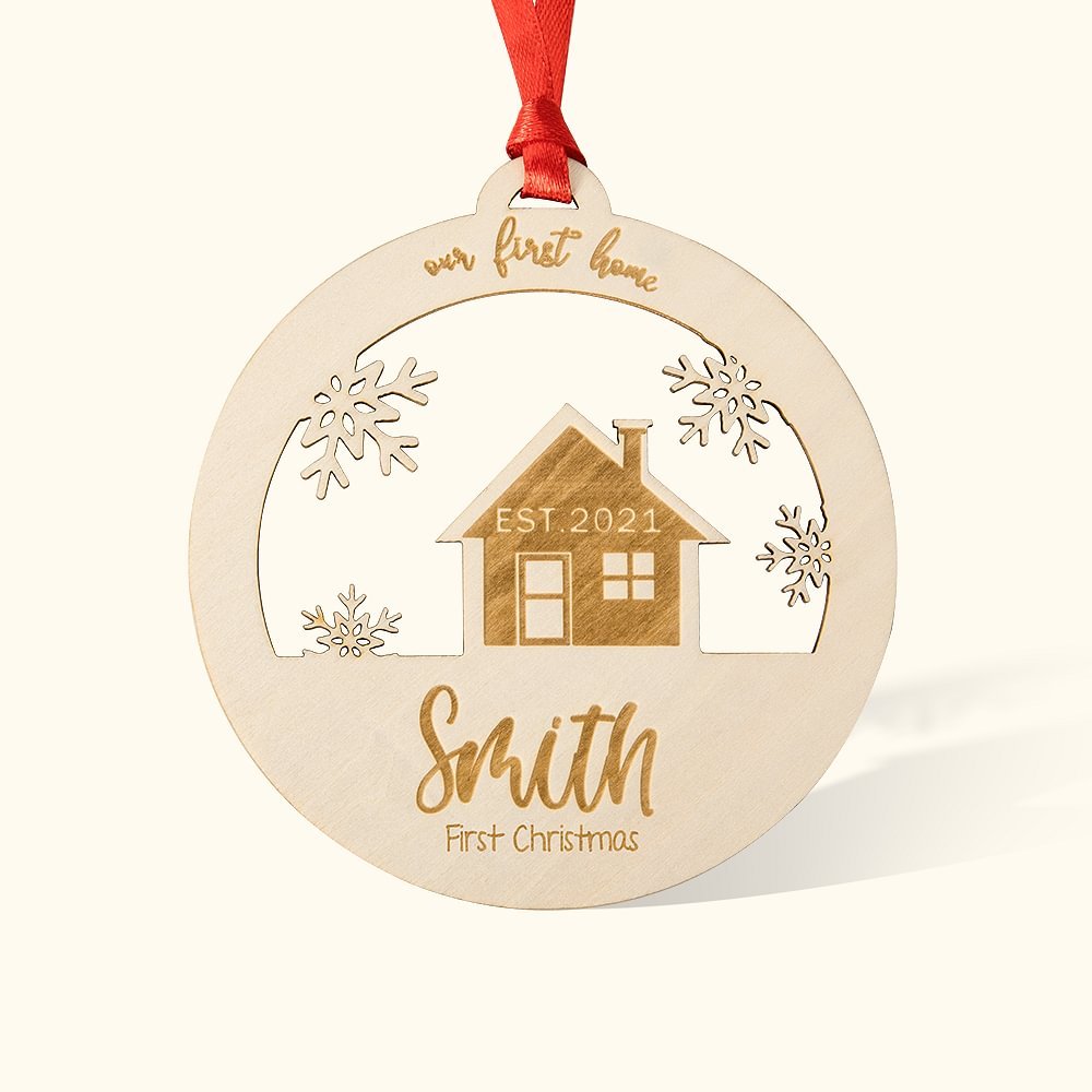 Il disegno è monofacciale e il retro è lasciato con la finitura naturale del legno. In questo modo è possibile realizzare un ornamento personalizzato. È possibile ordinare 1-8 ornamenti e personalizzare i nomi dei membri della famiglia su ciascun ornamento. Tuttavia, va notato che il limite massimo del numero di caratteri per ogni nome è di 8, mentre il numero di caratteri nel saggio inferiore deve essere controllato entro 18. Questo ornamento in legno è dotato di un nastro rosso per essere appeso facilmente e per aggiungere allegria alle feste. Si può appendere all'albero di Natale del cortile per evidenziare la scena felice nell'atmosfera festiva.