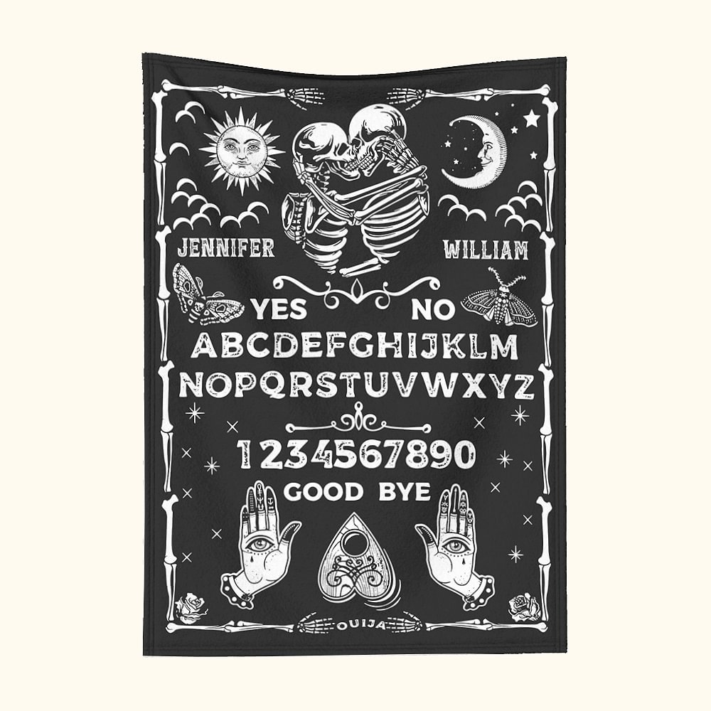 Il tema di questa coperta è Halloween e gli amanti della Ouija. Il disegno complessivo è una tavola Ouija. Al centro degli elementi gotici del sole e delle falene, una coppia di scheletri si abbraccia strettamente, simboleggiando l'amore eterno oltre questa vita.