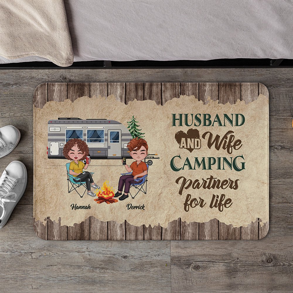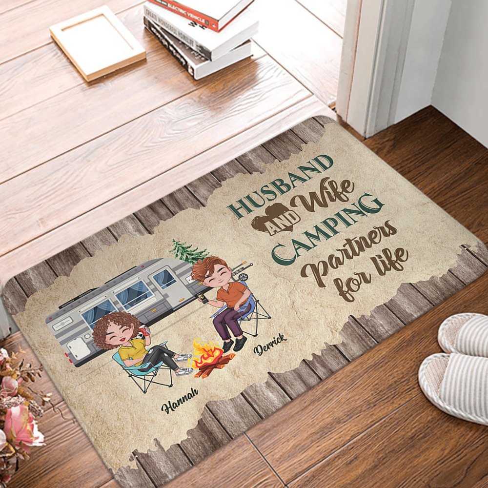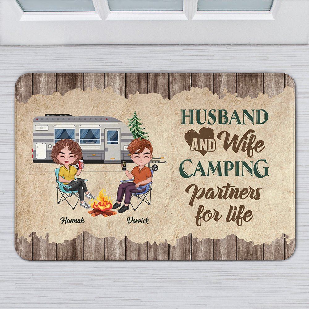 Marito e moglie in campeggio, partner per la vita, regalo di anniversario con tappetino per porta personalizzato