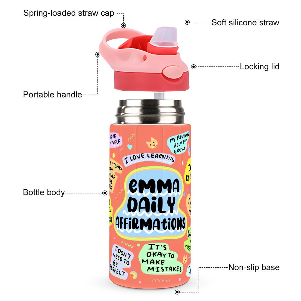 Bottiglia d'acqua personalizzata con nome da 12 oz con manico Regalo di compleanno per ragazzi e ragazze